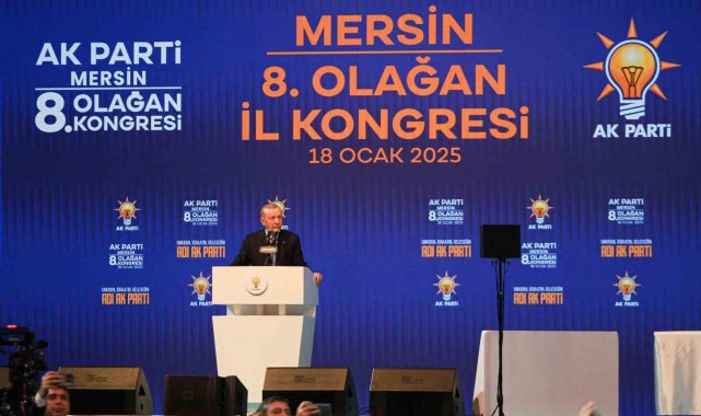 Cumhurbaşkanı Erdoğan, Mersin'de AK Parti Mersin 8. Olağan İl Kongresi'ne katıldı. Servet Tazegül Spor Salonu'nda düzenlenen kongrede konuşan Cumhurbaşkanı Erdoğan, Mersinlilere teşekkür ederek, "Bu salonda AK Parti'nin eseri. Biz laf değil, eser üretiriz. Bu salonu da aynı şekilde bizler ürettik. Servet o zamanlar şampiyon olduğu için onun adını bu salona verdik. Sizlerin şahsında Mersin'in kıyısındaki, ovasındaki kardeşlerimin her birine selamlarını gönderiyorum. Kongremizin Mersin'e ve ülkemize hayırlı, uğurlu olmasını diliyorum. Mersin sadece şehirlerden bir şehir değildir. Mersin, bu ülkenin huzurunun güvencesidir. Mersin, birliğimizin, dirliğimizin sembolüdür. Toroslarda, Yörük çadırlarının üstünde tüten duman sönmedikçe milletimiz ve devletimiz istikbale güvenle bakmaya devam edecektir. Mersin, kimseyi sınıflandırmamıştır. Burası medeniyetler yatağıdır. Mersin'in bu göz alıcı tablosuna kimse halel getiremez. Bu şehir dünyaya kardeşlik hukuku dersi veriyor ve vermeye devam edecek" ifadelerini kullandı.