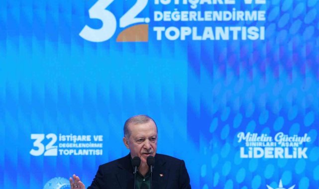 Konuşmasına toplantıya katılan Merkez Karar ve Yönetim Kurulu, diğer genel merkez kurulları, Kadın ve Gençlik Kolları üyeleri, milletvekilleri ve kabine üyelerini selamlayarak başlayan Cumhurbaşkanı Erdoğan, "AK Parti İstişare ve Değerlendirme toplantılarımızın 32'ncisinde sizlerle beraber olmaktan büyük bir memnuniyet duyuyorum. İstişare toplantımızın ülkemiz, milletimiz ve demokrasimiz için hayırlara vesile olmasını Cenabı Allah'tan niyaz ediyorum. Türkiye Yüzyılı'nı kutlu bir şafak bilen tüm kardeşlerimi, partimizin emektarlarını, kadın ve gençlik kollarımızı, genel merkezinden mahalle temsilcisine kadar her kademede fedakarca görev yapan tüm yol ve dava arkadaşlarımı buradan hürmetle selamlıyor, bu davaya gönül vermiş, bu dava için yüreğini ortaya koymuş her bir kardeşime şükranlarımı sunuyorum" "dedi