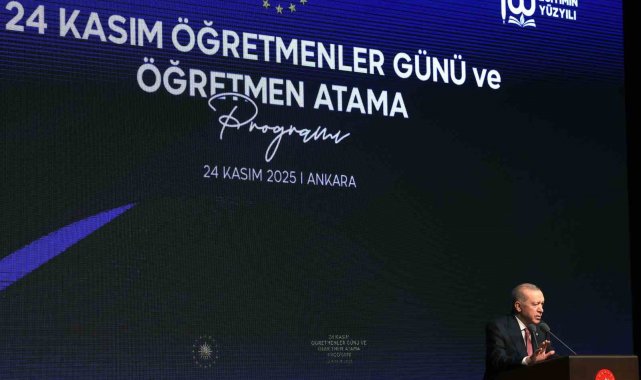 Cumhurbaşkanı Recep Tayyip Erdoğan, Beştepe Millet Kütüphanesinde düzenlenen 24 Kasım Öğretmen Günü ve Öğretmen Atama Programına katıldı. Programda konuşan Cumhurbaşkanı Erdoğan, öğretmenlerin herkesin hayatına yön verdiğini ve herkesin hayatında iz bıraktığını söyledi. Öğretmenler Günü dolayısıyla tüm öğretmenlerin Öğretmenler Günü'nü kutlayan ve şehit öğretmen Şenay Aybüke Yalçın ve Necmettin Yılmaz'ı da yad eden Erdoğan, "Sizlerin şahsında 81 ilimizdeki tüm öğretmenlere ülkem ve milletim adına teşekkür ediyorum. Ben de emeği ve göz nuru bulunan öğretmenlerime şükranlarımı sunuyor, hayatta olan hocalarımın her birinin tek tek ellerinden öpüyorum. Vazife başında şehit olan öğretmenlerimizle birlikte afetlerde, kazalarda kaybettiğimiz öğretmenlerimize rabbimden rahmet niyaz ediyorum. Bilhassa kendilerini her öğretmenler gününde milletçe hüzünle, hasretle ve minnetle andığımız şehit öğretmenlerimiz Şenay Aybüke Yalçın'a ve Necmettin Yılmaz'a Cenabı Allah'tan rahmet ve mağfiret niyaz ediyorum. Öğrencilerini yetiştirdikten sonra artık emekli olmuş öğretmenlerimize de sağlıklı hayırlı ömürler diliyor. Onlara da ayrıca şükranlarımızı iletiyorum. Bugün biliyorsunuz sadece ülkemizde değil dünyanın birçok yerinde Türk öğretmenler görev yapıyor, öğrenci yetiştiriyor. Gerek bakanlığımız bünyesinde gerek Türkiye Maarif Vakfı'na bağlı eğitim kurumlarımızda görev yapan eğitimci kardeşlerimi de teşekkür ediyorum" ifadelerini kullandı.