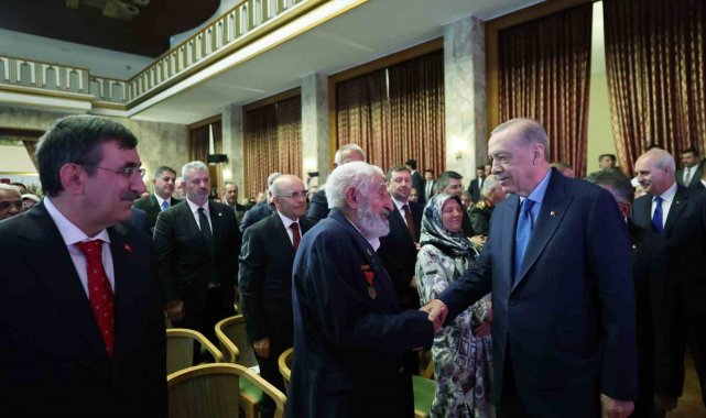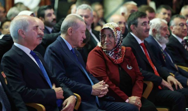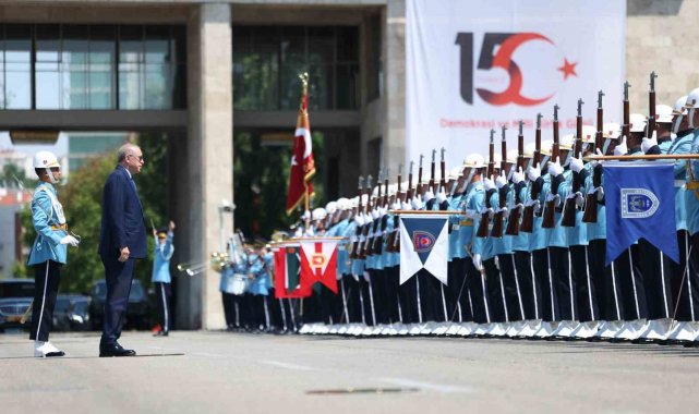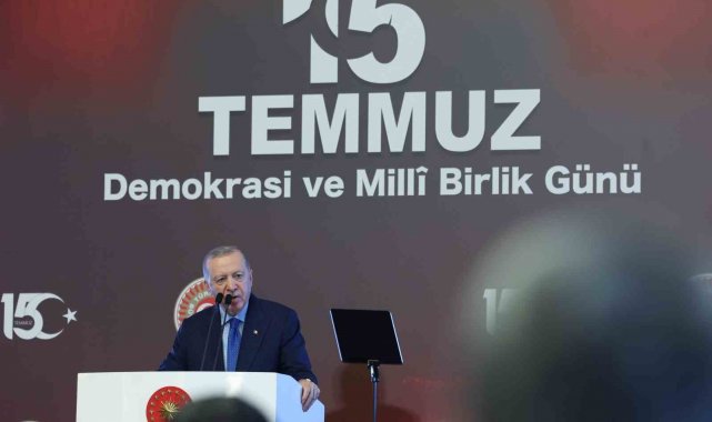 15 Temmuz'da milletin omuz omuza verdiğini kaydeden Erdoğan, "Şurası bir gerçek ki asırlardır şehit kanlarıyla sulanan bu topraklar tarihe yön veren destanların yazıldığı topraklardır. Zengin birikimiyle, müstesna seciyesiyle, taşıdığı güçlü imanla bu millet tam bin yıldır mazlumlara umut, düşmanlara korku ören bir millettir. İşte o millet Çanakkale ve milli mücadeleden sonra 15 Temmuz gecesi canıyla, kanıyla, bütün varlığıyla kıyamete kadar iftiharla alınacak şanlı bir destan yazmıştır. Bu destan çıplak ellerin tanklara, uçaklara, bombalara karşı zaferidir" diye konuştu.