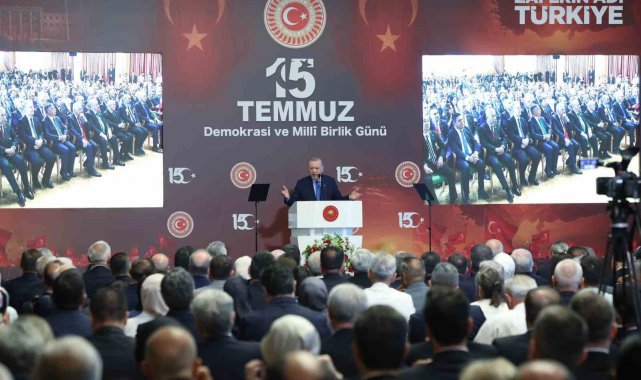 Cumhurbaşkanı Recep Tayyip Erdoğan, Türkiye Büyük Millet Meclisi'nde( TBMM) gerçekleşen 15 Temmuz Demokrasi ve Millî Birlik Günü Anma Programında konuştu. Erdoğan ,"Ateşten gömlek giydiğimiz bu imtihan gecesinde olduğu gibi yine güçlü bir şekilde omuz omuza vermiş birbirimize sıkıca kenetlenmiş durumdayız. Az önce seyrettiğimiz videoda o geceyi bir kez daha hatırladık. Acıyla, hüzünle, öfkeyle birlikte dayanışmayı, cesareti ve direnişi de tekrar gözlerimizin önünden geçirdik. İstiklal ve istikbalimize sahip çıkan, bu uğurda canlarını feda eden aziz şehitlerimizin ruhları için Fatiha-i Şerifelerimizi okuduk.