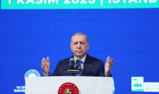 Konuşmasının devamında ise 'Terörsüz Türkiye' adımına dikkat çeken Cumhurbaşkanı Erdoğan, "Ülkemize hizmetlerimiz sadece yollarla, binalarla, bugün burada olduğu gibi çevre projeleriyle sınırlı değil. İktidar ve ittifak olarak en büyük yatırımı milletimizin kardeşliğine yapıyoruz, Türkiye'nin güvenliğine yapıyoruz. Cumhur İttifakı olarak bundan bir sene önce başlattığımız terörsüz Türkiye sürecinde kısa sürede kayda değer mesafe aldık. Tahrikler karşısında galeyana gelmedik. Şehit yakını ve gazilerimiz başta olmak üzere toplumun tüm kesimlerinin hassasiyetlerini gözettik. Özellikle bir tarafı yaparken diğer tarafı yıkmamaya itina gösterdik. Süreci herhangi bir yol kazası yaşanmadan bugünlere başarıyla getirdik. Münfesih terör örgütü, geçtiğimiz günlerde silahlı unsurlarını ülkemizden çekmekte ve sınır hattından uzaklaştırmakta olduğunu açıkladı. İlgili birimlerimiz sahadaki gelişmeleri anbean titizlikle takip ediyor. Hedefe giden yolda atılan her olumlu adımı önemsiyoruz. Türkiye Büyük Millet Meclisimizde kurulan komisyon, çalışmalarına yoğun bir şekilde devam ediyor. Son olarak perşembe günü Adalet ve Dışişleri Bakanlarımız komisyonu bilgilendirdi. Biz de külliyemizde DEM Parti heyetini kabul ettik. Kendileriyle son derece yapıcı, verimli ve geleceğe dair umut verici bir görüşme gerçekleştirdik. İnşallah bu görüşmenin yansımalarını önümüzdeki günlerde göreceğiz. Cumhur İttifakı olarak ülkemizin ve milletimizin hayrına olan işlerde çabuk davranılması gerektiğine inanıyoruz. Hassas, yapıcı, kucaklayıcı bir yaklaşımla çalışmalarımızı sürdüreceğiz. Milletimizin ödediği bedellerin boşa gitmediği, sadece sınırlarımız içinde değil, sınırlarımızın ötesinde de barışın, güvenliğin, huzurun ve kardeşliğin egemen olduğu yeni bir dönemi mutlaka başlatacağız. Bunda sonuna kadar kararlıyız. Önce terörsüz Türkiye, sonra terörsüz bölge menziline inşallah varacağız. Tüm bu stratejik adımları atarken elbette şu gerçeğin de bilincindeyiz: Hedefe yaklaştıkça hem yükümüz ağırlaşıyor hem de süreci kundaklamaya dönük çabalar yoğunlaşıyor. Türkiye'nin yarım asırlık meselesini çözmesini istemeyen odaklar, bilhassa da FETÖ'cü alçaklar operasyonlarına hız vermiş durumdalar. Milletimizi tedirgin etmek, şehit yakınlarımızı huzursuz etmek, kamuoyunu manipüle etmek amacıyla ellerinden geleni yapıyorlar. En büyük hedefleri ise 15 Temmuz gecesi şehitlerimizin mübarek kanlarıyla harcı karılan Cumhur İttifakı'nın birliğini, beraberliğini ve insicamını bozmak. Fakat muvaffak olamayacaklar. Bir olacağız, beraber olacağız, iri olacağız, diri olacağız, hep beraber Türkiye olacağız" diye konuştu.