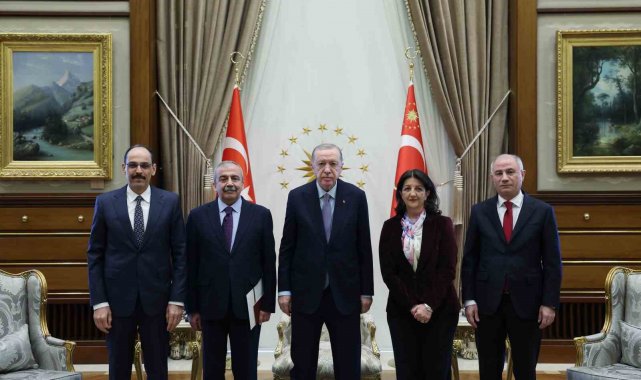 Cumhurbaşkanı Recep Tayyip Erdoğan, DEM Parti Van Milletvekili Pervin Buldan ve İstanbul Milletvekili Sırrı Süreyya Önder'i kabul etti. Cumhurbaşkanlığı Külliyesi'ndeki kabulde Milli İstihbarat Teşkilatı (MİT) Başkanı İbrahim Kalın ve AK Parti Genel Başkanvekili Efkan Ala da yer aldı.