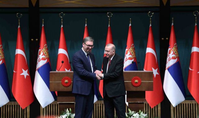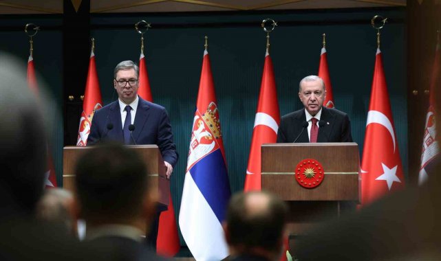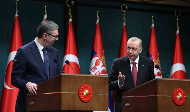 Vucic ile son olarak 11 Ekim 2024'te Belgrad'da Dördüncü Yüksek Düzeyli İşbirliği Konseyi Toplantısını gerçekleştirdiklerini hatırlatan Cumhurbaşkanı Erdoğan, "Aradan geçen süre zarfında gerek ikili münasebetlerimizde gerek bölgesel ve küresel meselelerde önemli gelişmeler yaşandı. Bugün kendisiyle bu gelişmelerin ilişkilerimize etkilerini değerlendirip ileriye yönelik atacağımız adımları istişare ettik. Bilhassa Balkanlarda istikrarın korunması ve ekonomik kalkınmanın güçlendirilmesi açısından neler yapabileceğimizi ele aldık. Sırbistan'la her geçen gün artan ticaret ve yatırımlarımız ilişkilerimizin adeta lokomotifi durumunda. Toplam ticaret hacmi geçtiğimiz yıl 3.5 milyar dolar seviyesine ulaştı. 5 milyar dolarlık hedefimize adım adım yaklaşıyoruz. Sırbistan'ın ev sahipliğinde Belgrad'da gerçekleştirilecek EXPO 2027'ye katılacağımızı daha önce duyurmuştuk. Bu önemli etkinliğin ülkelerimiz arasındaki ekonomik, ticari ve kültürel ilişkileri geliştirmek için ilave bir vesile teşkil edeceğini düşünüyoruz" ifadelerini kullandı.