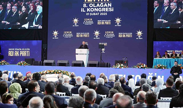 Cumhurbaşkanı Recep Tayyip Erdoğan, AK Parti 8'inci Olağan İl Kongresi'ne katılmak üzere İzmir'e geldi. Halkapınar Spor Salonu'nda düzenlenen kongrede partililere seslenen Erdoğan, "İzmir'i temsil etmeyi beceremeyenler bu şehrin ülkenin içeride ve dışarıda yürüttüğü mücadelelere kayıtsız bir yer olduğu itibarını vermek için de özel bir gayret sergiliyorlar. Halbuki İzmir yıllarca mazlumların derdiyle dertlenmiş yüreğini de toprağını da onlara açmış bir şehirdir. Osmanlı'nın son döneminde Ege'nin muhtelif yerlerinde Balkanlardan Kafkaslardan diğer yerlerden evlerini terk edip gelmek zorunda kalan yüz binler milyonlar önce İzmir'e sığınmıştır. Bir kısmı ülkenin başka yerlerine gitse de önemli bir bölümü de İzmir'i kendine yeni vatan olarak seçmiştir. Aynı şekilde ülkemiz içinde nüfus hareketlerinin çok arttığı dönemlerde İzmir; Mardin'den Erzurum'a Konya'dan Kars'a Afyon'dan Ağrı'ya Sivas'tan Balıkesir'e kadar pek çok farklı şehirden insanların yeni yuvası olmuştur. Gerisinde nice acı hikayeleri nice umut arayışlarını barındıran böylesine bir demografik zenginliğe sahip İzmir'in gündemini Türkiye'den ayrıştırmaya kalkmak en hafif tabiriyle gaflettir" dedi.