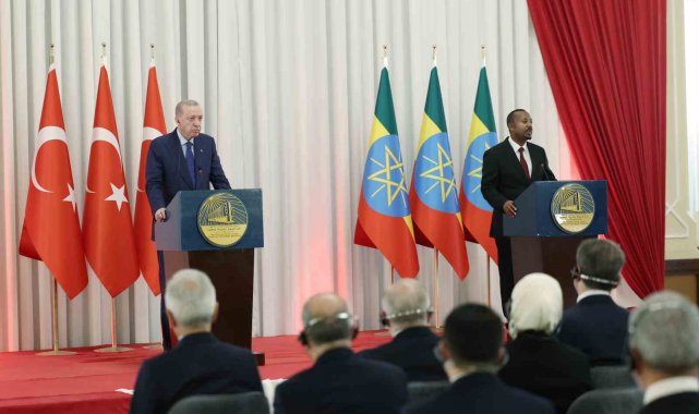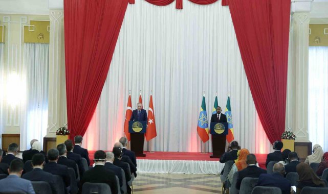 Cumhurbaşkanı Erdoğan, Etiyopya'nın siyasi, sosyal ve ekonomik dönüşümü dolayısıyla Ahmed Ali'yi tebrik etti. Tüm dünyanın gözleri Afrika Boynuzu ve Etiyopya'ya çevrilmişken, Etiyopya'nın köklü devlet yapısının örnek gösterilecek yönetiminin öneminin daha çok hissedildiğini vurgulayan Cumhurbaşkanı Erdoğan, "Etiyopya'nın içinde bulunduğu coğrafyada devletlerin egemenliğine ve toprak bütünlüğüne kıymet veren tutumumuzun altını bilhassa çizmek istiyorum. Türkiye olarak, bölgenin yeterince çektiği çatışma ve acılara yenilerinin eklenmesini asla istemiyoruz. Biz, bölgenin sorunlarına yine bölge ülkelerinin çözüm geliştirmesi ve Afrika Boynuzu'nun yabancı güçlerin mücadele alanına çevrilmemesi gerektiğine inanıyoruz. Bu minvalde İsrail'in Somaliland'ı tanımasının ne Somaliland'a ne de Afrika Boynuzu'na faydası olmadığını tekrar vurgulamak istiyorum. Bu vesileyle yakın geçmişte Etiyopya ve Somali arasında arabuluculuğunu yürüttüğümüz Ankara Süreci'ndeki tutumları için her iki tarafa da tekrar teşekkür ediyorum. İstikrara kavuşmasıyla birlikte, Afrika Boynuzu'nun ekonomik fırsatlarıyla dikkatleri üzerine çeken bir konuma erişmemesi için hiçbir engel görmüyoruz. Müspet neticelerini alacağımıza emin olduğum bu ziyaretimizin bölgenin barış ve istikrarına da katkı sunmasını temenni ediyorum. Malumunuz, Türkiye olarak Birleşmiş Milletler İklim Değişikliği Çerçeve Sözleşmesi Taraflar Konferansı'na bu sene kasım ayında ev sahipliği yapacağız. Etiyopya'nın da önümüzdeki yıl tertipleyeceği bu toplantı bağlamında yakın işbirliğimizi sergileyeceğiz" dedi.