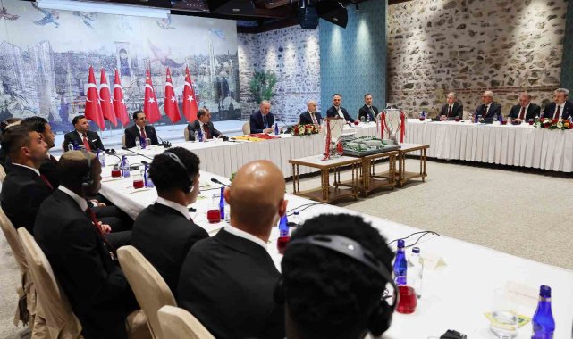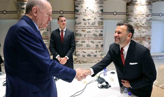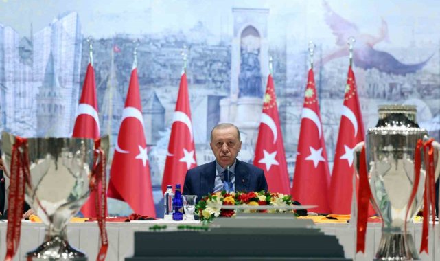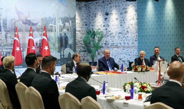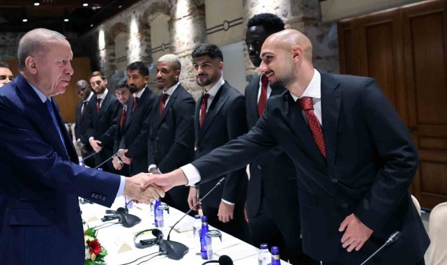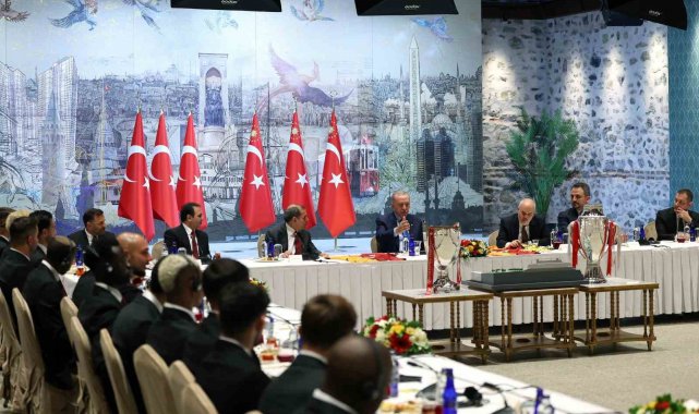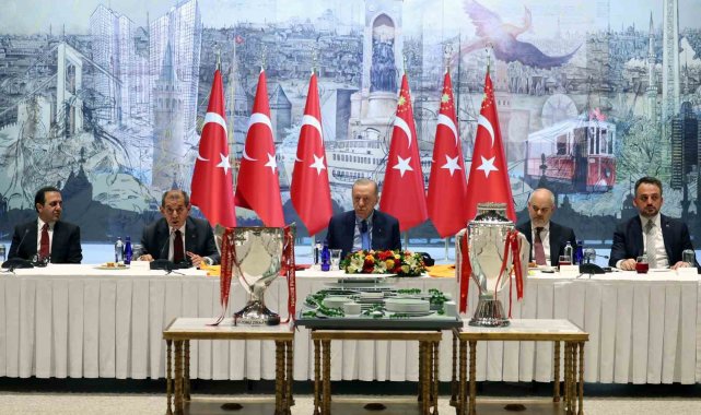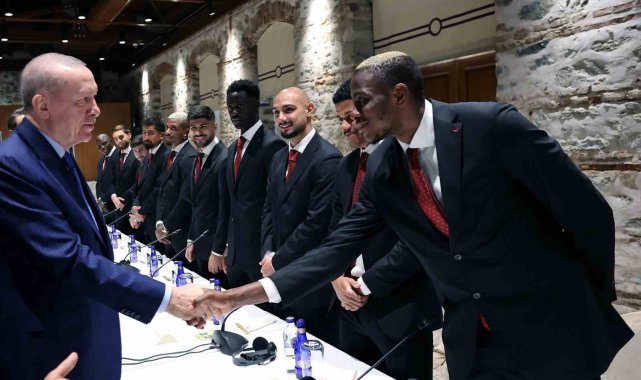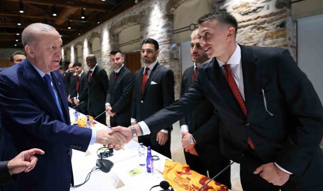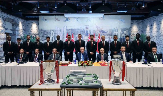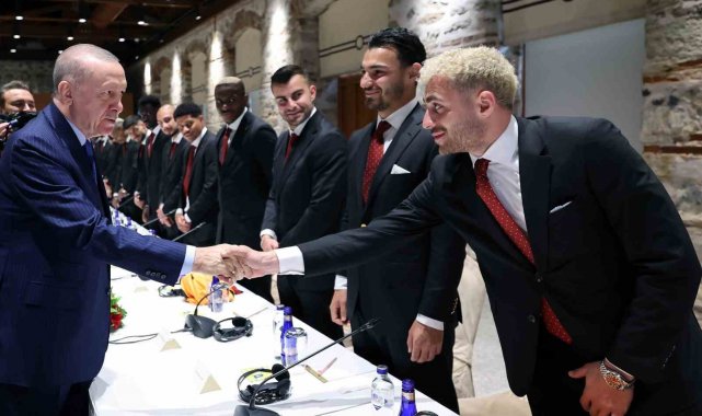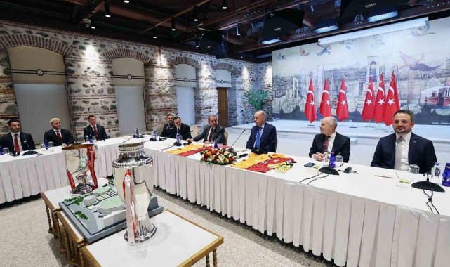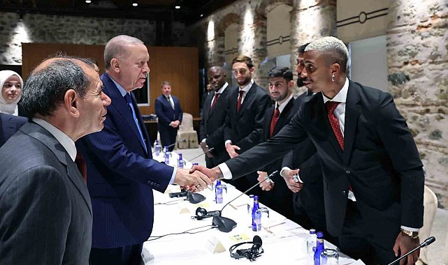 Cumhurbaşkanı Recep Tayyip Erdoğan, 2024-2025 sezonunda Trendyol Süper Lig'de ve Ziraat Türkiye Kupası'nda şampiyon olan Galatasaray'ın heyetini, Cumhurbaşkanlığı Dolmabahçe Çalışma Ofisi'nde kabul etti. Galatasaray Başkanı Dursun Özbek, yönetim kurulu üyeleri, Teknik Direktör Okan Buruk ve futbolcularla tek tek tokalaşan Cumhurbaşkanı Erdoğan, sarı-kırmızılıların şampiyonluklarını tebrik etti.