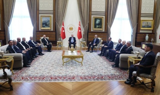 Cumhurbaşkanı Recep Tayyip Erdoğan, Hamas heyetini Cumhurbaşkanlığı Külliyesi'nde kabul etti.