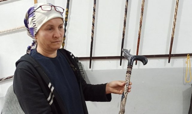 Devrek'te yaşayan Fatma Ayvacı, bir yandan evinin işlerini yürütürken diğer yandan atölyede kızılcık ağacına şekil veriyor. 2003 yılından bu yana eşine yardım ederken mesleği öğrenen ve ustalaşan Ayvacı, kadın elinin değdiği bastonların inceliklerini anlattı.