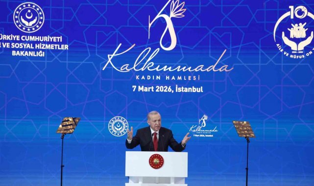 Erdoğan konuşmasının devamında kadınların dünya üzerinde yaşadığı zorluklara değinerek, "Dünya Kadınlar Günü'nü küresel ölçekte kadın sorunlarının ağırlaştığı, özellikle yakın çevremizde kadınların çok zor günler yaşadığı bir dönemde karşılıyoruz. Elini vicdanına koyan herkes, şu tabloyu çok net görebiliyor. Bugün, başta bölgemiz olmak üzere, dünyanın farklı yerlerinde çatışma var, bunun acısını en çok kadınlar çekiyor. Bugün dünya, büyük bir gelir dağılımı adaletsizliği ile karşı karşıya. Bundan en çok kadınlar mağdur oluyor. Bugün dünyada, batıl inançlardan, asabiyeden, yanlış örf ve adetlerden kaynaklanan ayrımcılık var. Bu durum en çok kadınları olumsu etkiliyor. Bugün dünyayı devasa bir markete dönüştüren tüketim çılgınlığı çarkı öncelikle kadınlık onurunu hedef alıyor. En fazla kadın emeğini sömürüyor. Gazze'de İsrail'in iki yıl boyunca katlettiği 72 binden fazla kardeşimizin çoğu kadın ve masum çocuklar. Suriye'de 13 buçuk yıllık zulmün ardından kayıplarını yüreklerine gömerek, yeniden hayata tutunmaya çalışanların çoğu kadın ve çocuklar. Afrika'da kıtlığın, açılığın ve her gün biraz daha derinleşen yoksulluğun yükü altında ezilen yine kadın ve çocuklardır. Komşumuz İran'a yönelik saldırıların yükünü sırtlanmak zorunda kalanların ekseriyeti aynı şekilde kadın ve çocuklardır. Vicdan sahipleri olarak hepimiz bunu görüyor ve bu hazin tablodan büyük bir üzüntü duyuyoruz. Sadece görmekle kalmıyor, aynı zamanda tepkimizi de ortaya koyuyoruz. Türkiye, yakın çevresinden başlayarak, yeryüzünün farklı noktalarındaki bu adaletsizliklere, bütün bu zulümlere en güçlü tepkiyi veren, nerede olursa olsun ayrımcılığa, hukuksuzluğa itiraz eden ülkelerin başında geliyor. Komşumuz İran'da olduğu gibi, nerede bir yangın varsa, su taşımaya, nerede bir yara kanıyorsa, ona merhem olmaya çalışıyoruz. Ülkemiz, insani değerleri merkeze alan haysiyetli duruşun en büyük bekçisi hanım kardeşlerimizdir" dedi.