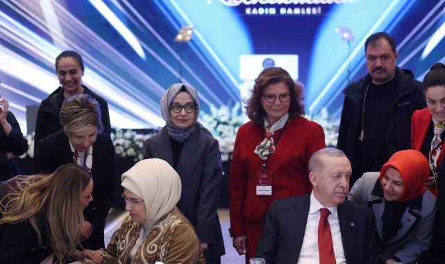 Cumhurbaşkanı Erdoğan, eşi ve kızının kadınlar gününü kutlayarak başladığı konuşmasında, "Muhterem eşim ve sevgili kızlarımla birlikte bir anne, eş, kardeş, yoldaş ve evlat olarak hayatımıza anlam ve değer katan tüm kadınlarımızın 8 Mart Dünya Kadınlar Günü'nü şimdiden kutluyorum. Siz kardeşlerimin yanı sıra, evladını vatan uğruna şehit vermiş, en az şehit evlatları kadar kahraman şehit anlarının hepsi birer metanet timsali olan şehit eşlerinin ve şehit kızlarının, Gazze'den, Suriye'ye, Yemen'den, Sudan'a gönül ve kültür coğrafyamızın farklı köşelerindeki acılı annelerin, acılı eşlerin, 8 Mart Dünya kadınlar gününü tebrik ediyor, kendilerini buradan hürmetle selamlıyorum. Bağırlarına basarak okula gönderdikleri kız çocuklarının mezarına sarılan, yüreği yanık İranlı anneleri ayrıca selamlıyor, ülkemizdeki kadınlar adına kendilerine bir kez daha taziyelerimizi iletiyor, acılarını yürekten paylaştığımızı ifade ediyorum. Afrika'nın yoksul ve cefakar kadınlarının, Afganistan'ın, Arakan'ın, Somali'nin mazlum kadınlarının, İsrail'in kendi topraklarında huzura hasret bıraktığı Lübnanlı kadınların, Batıda, sinema, moda ve medya sektörlerinin acımasız dişleri arasında ezilen, şiddete ve istismara uğrayan tüm kadınların, Dünya Kadınlar Gününü tebrik ediyor, kendilerine Türkiye'den hem dayanışma mesajlarımızı hem de kucak dolusu selamlarımızı gönderiyoruz. Savaşlar ve zulümlerde hayatını kaybedenlerle birlikte ülkemizde teröre ve şiddete kurban verdiğimiz tüm kadınlara Rabbimden rahmet ve mağfiret niyaz ediyorum" şeklinde konuştu.