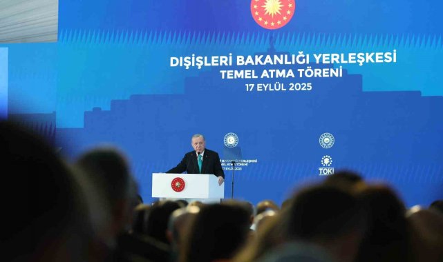 Türkiye'nin Hariciye Teşkilatı'nın köklü geleneğine dikkat çeken Erdoğan, "1523'te Reisü'l-Küttablığın teşekkülüyle bugünkü manada temelleri atılan Hariciye teşkilâtımızın 500'üncü yıl dönümünü 2023'te idrak etmiştik. Bu köklü diplomasi mirası, milletimizin aklı, feraseti ve sabrı ile yoğrulmuş; daima saygı uyandırmış, örnek alınmıştır. Bugün burada, 2025 senesinde, bu yeni karargâhın temellerini atarken, aynı birikimin üzerine yenilerini ekliyoruz. Sizlerin de görevlerinizi bilgi, yetkinlik, fedakârlık ve özgüvenle beş asırlık Hariciye müktesebatının yanı sıra, 2000 yılı aşan devlet geleneğimizin rehberliğinde yerine getireceğinize gönülden inanıyorum. Milletimizin Bakanlığımızdan beklentisi her zaman yüksek olmuştur. Bugün de karşı karşıya bulunduğumuz tehditlerin büyüklüğü, bu beklentiyi daha da artırmaktadır. Bakanlığımızın bu beklentiyi karşılama noktasında en küçük bir zafiyete düşmeyeceğini çok iyi biliyorum. Dışişleri Bakanlığımız, bugün dünyanın hatırı sayılır diplomasi merkezleri arasında ilk sıralarda yer alıyor. Birazdan temelini atacağımız yerleşkemizin de hizmete girmesiyle inşallah Bakanlığımızın çalışma imkan ve kabiliyetleri daha da artacaktır. Yerleşkemiz tamamlandığında Türkiye'nin küresel barış, istikrar ve adalet için verdiği mücadelenin yeni üssü haline gelecektir" dedi.