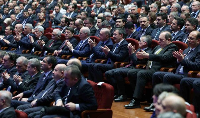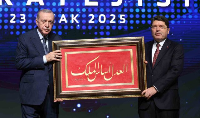 "Toplum yaşantımız, kişisel hayatımız ve değer müktesebatımız gibi devlet tasavvurumuz da asırlar boyunca adalet mihengine vurduğumuz fikir ve faaliyetlerle şekillenmiş; hak ve hukuka göre tekemmül etmiştir" diyen Cumhurbaşkanı Erdoğan, "Bin yıldır hakla, hukukla, hakikatle yoğurduğumuz bu topraklar; en doğusundan en batısına iyilik ve erdem tohumlarıyla yeşerttiğimiz gönül coğrafyamız, yüksek adalet şuurumuzun en yakın şahididir. Böyle köklü ve zengin bir birikimin rehberliğinde adalet hizmetlerinin en üst seviyede vatandaşlarımıza sunulması için yoğun gayret gösteriyoruz. Şurası bir gerçek ki; adalet sistemimizin tüm unsurlarıyla güçlü, hızlı ve etkin bir şekilde işlemesi, milletimizin her bir ferdini yakından ilgilendiriyor" diye konuştu.