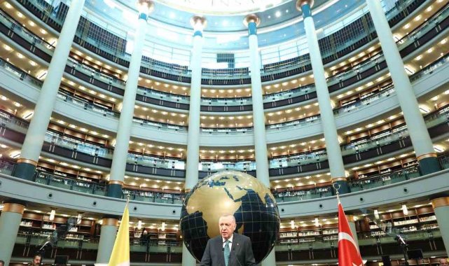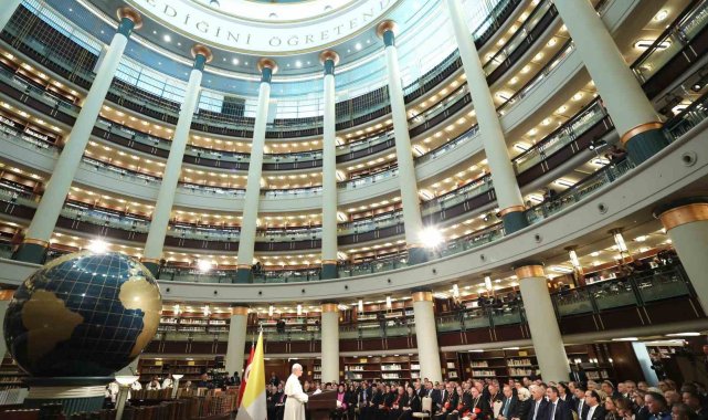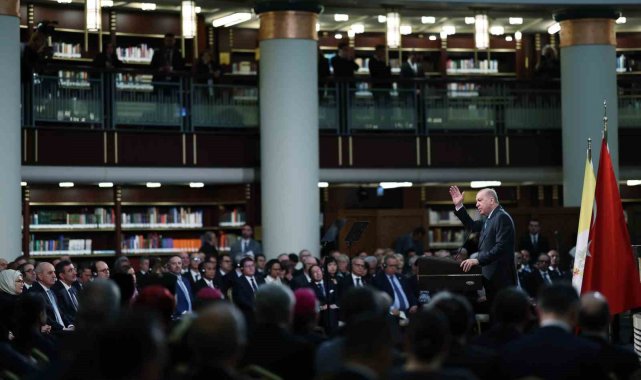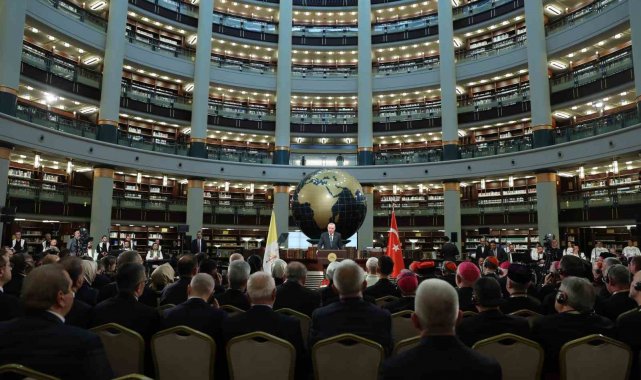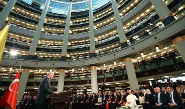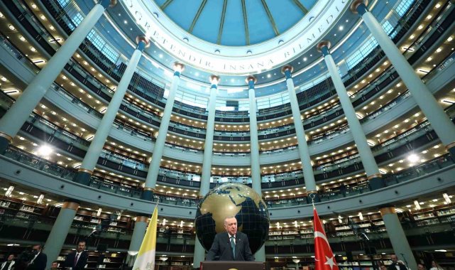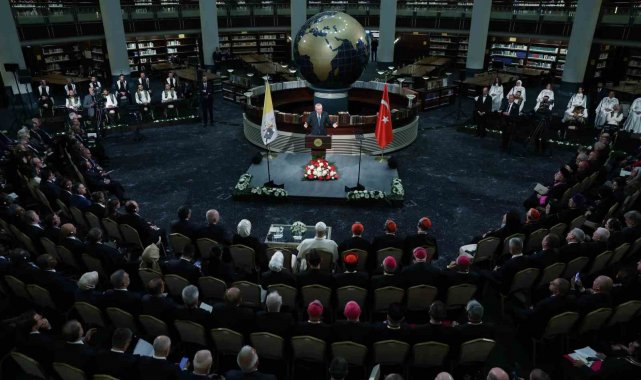 Cumhurbaşkanı Recep Tayyip Erdoğan, Vatikan Devlet Başkanı Papa 14. Leo Cumhurbaşkanlığı Millet Kütüphanesi Cihannüma Salonun'da Davetlilere hitap etti.