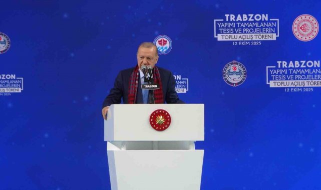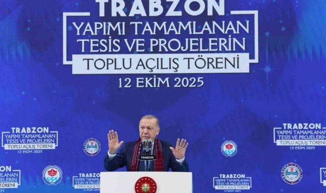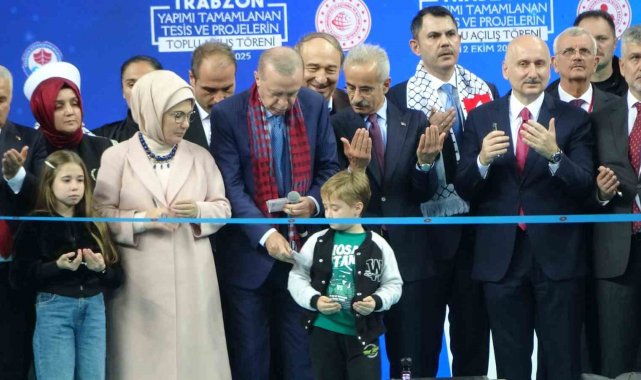 "13 milyar 514 milyon lira değerindeki 130 proje toplu açılış için bugün sizlerle bir aradayız" diyen Erdoğan, son 23 yılda Trabzon'a toplam 540 milyar lira tutarında kamu yatırımı yaptıklarını hatırlattı. Açılışı yapılan projelerle ve devam eden projelerle ilgili bilgiler veren Erdoğan, "Trabzon havalimanının ihtiyacı karşılamakta zorlandığını biliyorum. Yeni projeyi bitirdik ve inşallah ihalesini bu sene yapıyoruz. Çalışmalarına da önümüzdeki yıl başlamayı planlıyoruz. Böylece deniz üzerine 3. havalimanımızı Trabzon'a inşa edeceğiz" müjdesini verdi.