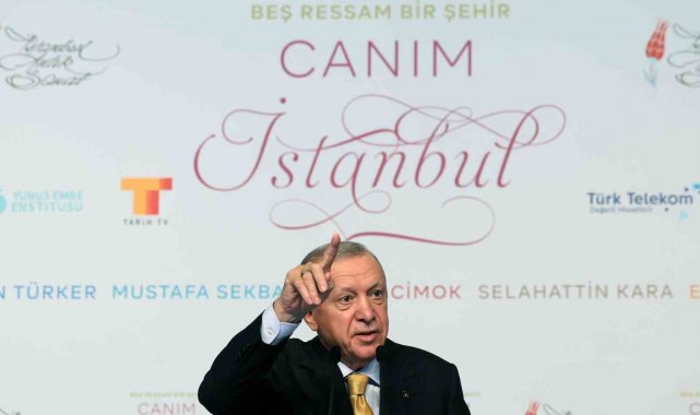 Cumhurbaşkanı Recep Tayyip Erdoğan Lütfi Kırdar Kongre ve Sergi Sarayı'nda düzenlenen "Beş Ressam Bir Şehir Canım İstanbul Programı"nda bir konuşma yaptı. Cumhurbaşkanı Erdoğan serginin, İstanbul'un eşsiz güzelliklerini ve zengin dokusunu bir araya getirdiğini söyleyerek, "Osmanlı'da sadrazamlık da yapmış diplomat ve şair merhum Koca Ragıp Paşa 3 asır önce kaleme almış beytini şu mısra ile hafızalara kazınmıştı. 'Eğer maksud eserse, mısra-i berceste kafidir'. Buradaki her bir çalışmayı tüm bir kompozisyonuyla ahenkli bir şiiri andıran İstanbul'un en güzel mısraları olarak gördüğümü ifade etmek isterim. İstanbul'da yaşayan sanatseverlerin 16 Eylül'e kadar büyük emek verilen bu sergiyi zaten ziyaret edeceklerdir. Diğer illerimizdeki İstanbul aşıklarının da bu sanat şölenini bizzat yerinde gelip göreceklerine inanıyorum. Sanata ve İstanbul'a gönül veren tüm kardeşlerimi sergiyi ziyaret etmeye davet ediyorum. Evvelemirde şu hakikatin altını çizmemiz gerektiği kanaatindeyim. Bin yıldır üzerinde özgürce yaşadığımız, inşallah kıyamete kadar da milletimizin ana yurdu olacak bu aziz topraklar, dünyanın en eski medeniyetlerine ev sahipliği yapmıştır. Bu medeniyetler felsefeden mimariye, bilimden sanata, siyasetten hukuka hemen her alanda tüm ürünlerini önce bu coğrafyada vermiştir. Anadolu'da üretilen eserler, burada oluşan değerler asırlar boyunca halka halka önce etrafına ardından tüm cihana yayılmıştır. Bin yıllara sari bu sürece biz de millet olarak son derece önemli katkılar yaptık. İnancımızla, dilimizle, geleneğimizle, motiflerimizle, ilmi ve kültürel hazinemizle insanlığa pek çok değer kazandırdık. Kimliğimizi teşkil eden, ruh köklerimizi besleyen ne kadar unsur varsa hepsini de sanatımıza ve eserlerimize yansıtmayı, aktarmayı, dercetmeyi başardık. Bakınız, merhum Ahmet Hamdi Tanpınar 1932 yılında, yani bundan tam 93 sene önce verdiği bir mülakatta sanatın amacını nasıl tarif ediyor, 'Sanatın gayesi güzelliktir. Güzellik bir kemaldir. Sanatın malzemesi de bu kemali nakşetmeye çalışır' Millet olarak bu anlayışla sanatı iyiye, güzele, hakka ve hakikate giden yolun köşe taşları olarak gördük. Eserlerimize daima bu hikmetli kavrayışla baktık. Üslubumuzu yine buna göre belirledik" dedi.
