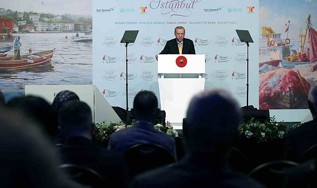 İstanbul, 86 milyon vatandaşla birlikte Türk-İslam coğrafyasının ortak değeri, ortak zenginliği olduğunu vurgulayan Erdoğan, "Şiirimizle, müziğimizle, mimari eserlerimiz ve kültür varlıklarımızla sanatın her şubesinde yalnızca Anadolu'da değil, gönül coğrafyamızın dört bir yanında adeta yıldız gibi parladık. Şurası bir gerçek ki bu yıldızların en göz kamaştıranı İstanbul'dur. İstanbul'umuz kutlu fethin ilk günlerinden itibaren tarih ve medeniyet teknemizde yoğurduğumuz sanat hamurunun mayasını oluşturdu. Üstat Necip Fazıl'ın kelimeleriyle ifade edersek, 'Denizle toprağın visale erdiği bu aziz şehir, kültür ve sanat hayatımızın en verimli muhitini, hatta çoğu zaman menbağını teşkil etti' Seçkin ve zengin mimarisiyle, tarihi ve kültürel derinliğiyle İstanbul, sanat eserlerimizin adeta serlevhası olmuştur. Görenleri kendine hayran bırakan bu güzel şehrin sokakları, meydanları, camileri, çeşmeleri, tepeleri ve daha nicesi şiirlerimiz, romanlarımız ve türkülerimizle birlikte tuvallerimizi de süslemiştir. Bütün medeniyetlerin mirası, milletimizin bin yıllık mührüyle mühürlenmiş, burada, İstanbul'da muhafaza altına alınmıştır. İstanbul medeniyet demektir, tarih demektir, ilim ve sanat demektir. Bu şehir, üç kıtada hutbelerin adına okunduğu şehirdir. Bu şehir, kutsal emanetlere ev sahipliği yapan bir şehirdir. İstanbul, 86 milyon vatandaşımızla birlikte Türk-İslam coğrafyasının ortak değeri, ortak zenginliğidir. Kıymetli dostlar, şunu da burada büyük bir gururla ifade etmek isterim. Asya'dan Amerika'ya, Afrika'dan Avrupa'ya birçok kıtada bulundum. Dünyanın yüzlerce şehrini farklı vesilelerle ziyaret ettim. Ama tarihiyle, tabiatıyla, maneviyatıyla her metrekaresine nakış nakış işlenmiş güzellikleriyle İstanbul gibisini başka hiçbir yerde görmedim. Gözlerimi dünyaya bu şehirde açmaktan, bu şehirde büyümekten, bu aziz şehre hizmet etmekten daima şeref duydum" ifadelerini kullandı.