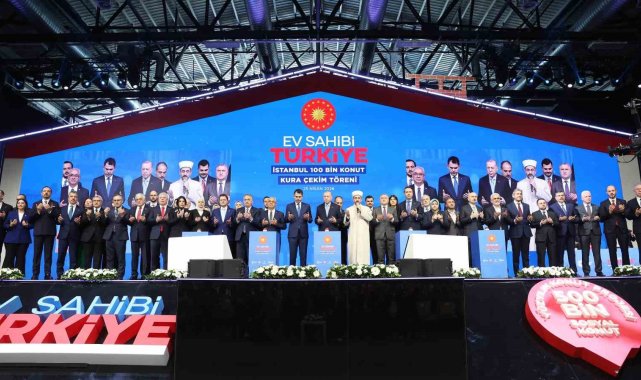 24 Ekim'de Cumhuriyet tarihinin en büyük sosyal konut hamlesi olan Yüzyılın Konut Projesi'ni devreye aldıklarını, 500 bin sosyal konut seferberliğini başlattıklarını duyurduklarını hatırlatan Cumhurbaşkanı Erdoğan, "29 Aralık'ta start verdiğimiz kura çekimlerini 81 ilimizde nihayete erdirdik. Bugün de proje kapsamında 100 bin konut ayırdığımız İstanbul'da hak sahiplerini belirleyeceğiz. Konutlarımızı devlet güvencesiyle 240 aya varan vade imkanıyla satışa sunacağız. Taksitler 7 bin 313 lira ile 11 bin lira arasında olacak. Bu ödeme modeliyle vatandaşlarımız uzun vadeli, düşük taksitli ve güvenli bir şekilde ev sahibi olacak. Kura çekiminin ardından temelleri atacak, evlerimizi en kısa süre içinde vatandaşlarımıza teslim edeceğiz. Bunlara ilaveten kiralık sosyal konut uygulamamızı da Türkiye'de ilk kez İstanbul'da başlatıyor, TOKİ eliyle kiralama sistemini kuruyoruz. Projenin ilk adımını 15 bin kiralık sosyal konutla atacağız. Yüzyılın Konut Projesi sadece konut üretimiyle sınırlı bir atılım değildir. Aynı zamanda insan odaklı ve tam teşekküllü yaşam alanlarının inşasıdır. Mahalle konaklarımızla bu projeye yepyeni bir boyut kazandırıyoruz. TOKİ'mizin koordinasyonunda inşa edilecek 500 mahalle konağında 500 cami, 500 aile sağlığı merkezi, 500 gündüz bakımevi, 500 el sanatları üretim merkezi, 500 spor salonu ve 500 misafirhane yer alacak. Mahalle konaklarımızla hem mahalle kültürümüzü yaşatacak hem değerlerimizi koruyacak hem de şehirlerimiz için çok önemli işlevler görecek yapıları da şehirlerimize ve milletimize kazandıracağız" ifadelerini kullandı.