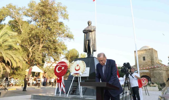 Cumhurbaşkanı Recep Tayyip Erdoğan, Kuzey Kıbrıs Türk Cumhuriyeti'ndeki (KKTC) 20 Temmuz Barış ve Özgürlük Bayramı kapsamında Atatürk Anıtı'na çelenk bıraktı.