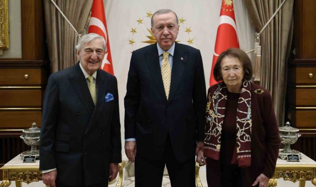 Cumhurbaşkanı Recep Tayyip Erdoğan, iş adamı Rahmi Koç ve Vehbi Koç Vakfı Yönetim Kurulu Başkanı Semahat Arsel'i Cumhurbaşkanlığı Külliyesi'nde kabul etti.