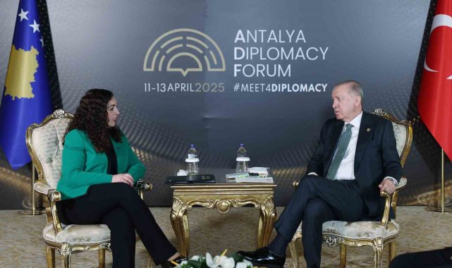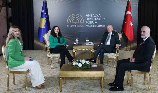 Cumhurbaşkanı Recep Tayyip Erdoğan, Antalya Diplomasi Forumu için Türkiye'de bulunan Kosova Cumhurbaşkanı Vjosa Osmani-Sadriu ile bir görüşme gerçekleştirdi.