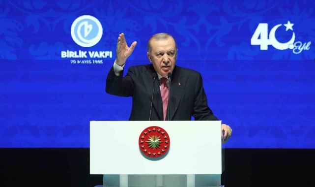 Muhterem başkanlarımız Yaşar Karayel ve Mehmet Alacacı'nın şahsında, vakfımızın kurucular kuruluna, mütevelli heyetine yine burada başarı dileklerimi ileten Cumhurbaşkanı Erdoğan, "Teşekkür ediyorum. Rabbim emeklerinizi zayi etmesin. Çabalarınızı, gayretlerinizi, döktüğünüz şu alın ve fikir terini inşallah hayra tebdil eylesin diyorum. Arkadaşlarım, bir defa şunu büyük bir bahtiyarlıkla ifade etmek istiyorum. Şahsımın da kurucuları arasında yer aldığı Birlik Vakfı özellikle eğitim ve kültür alanında 40 yıldır mühim bir misyonu, hamdolsun, başarıyla yerine getiriyor. 50 ilimizdeki 55 şubesiyle, barınma hizmetlerinden burs desteklerine, bilim, kültür ve sanat faaliyetlerinden yabancı dil kurslarına, oldukça geniş bir yelpazede gençlerimizin elinden tutuyor, onları yarınlara hazırlıyor, istikbalimizin güvencesi olan genç arkadaşlarımıza rehberlik ediyor. Konferanslarıyla, panelleriyle, matbu ve dijital yayın faaliyetleriyle, farklı ihtisas alanlarındaki yirmiyi aşkın komisyonuyla Birlik Vakfımız ilim, kültür ve irfan hazinemizi maziden atiye ulaştırıyor. Buradaki arkadaşlarımız milli ve manevi değerlerine sıkı sıkıya sarılan, bilgisiyle, eğitimiyle, ufku ve karakteriyle karanlıklar içinde ışıl ışıl parlayan bir gençliğin yetişmesi için 40 yıldır elinden geleni yapıyor. Vakfımızın niyeti hayır olduğu için hamdolsun, cehdi de emeği de gayreti de hayırlı neticelerle taçlanıyor. Merkezinde birlik anlayışının yer aldığı bu ocaktan yetişen kardeşlerimiz bugün siyasetten iş hayatına, akademiden bürokrasiye, her alanda Türkiye'ye alınlarının akıyla hizmet ediyor. Tüm zorluklara, tüm sıkıntılara rağmen 29 Mayıs 1985'ten beri tekerleğin tümsekte kalmasını bekleyenlere rağmen bütün bu hizmetleri yaptık, yapıyoruz, Rabbim ömür verdikçe de yapmaya devam edeceğiz" şeklinde konuştu.