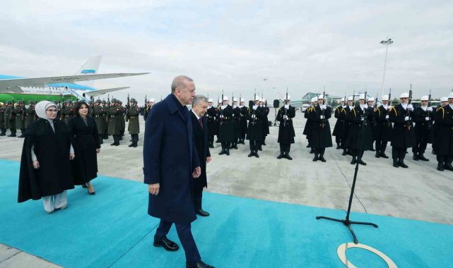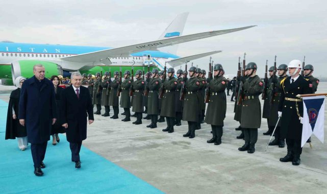 Özbekistan Cumhurbaşkanı Şevket Mirziyoyev, Ankara'ya resmi ziyarette bulundu. Konuk Cumhurbaşkanı Mirziyoyev'in içinde bulunduğu makam aracını Cumhurbaşkanlığı Külliyesi'nin önündeki caddede karşılayan 103 süvari, Mirziyoyev'e protokol kapısına kadar eşlik etti. Cumhurbaşkanı Erdoğan, Mirziyoyev'i Cumhurbaşkanlığı Külliyesi'nin ana giriş kapısında karşıladı. Erdoğan ve Mirziyoyev'in tören alanındaki yerlerini almalarının ardından 21 pare top atışı eşliğinde iki ülkenin milli marşları çalındı. Mirziyoyev, Muhafız Alayı Tören Kıtası'nı 'Merhaba asker' diyerek selamladı. Törende tarihte kurulan 16 Türk devletini temsil eden bayraklar ve askerler de yer aldı. Heyetlerini birbirine takdim eden Erdoğan ve Mirziyoyev, merdivenlerde Türkiye ve Özbekistan bayrakları önünde gazetecilere poz verdi.