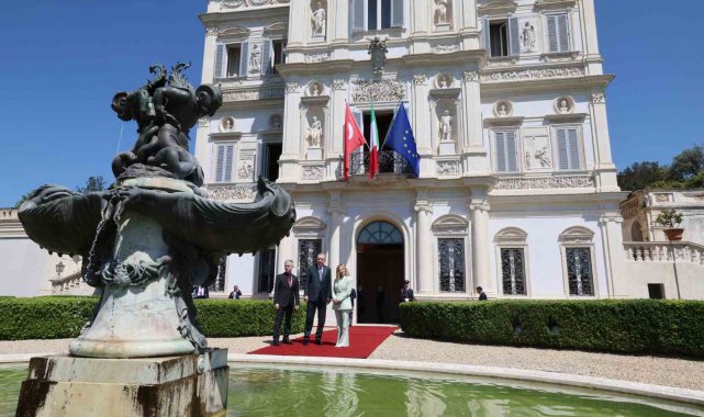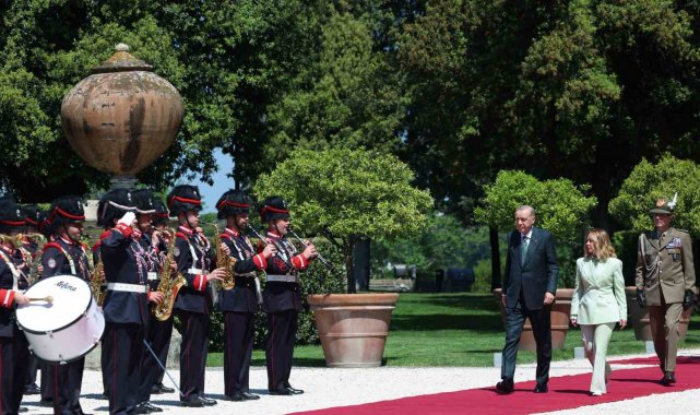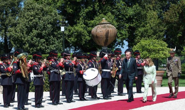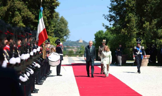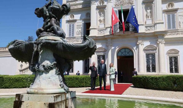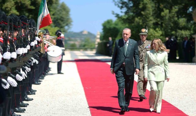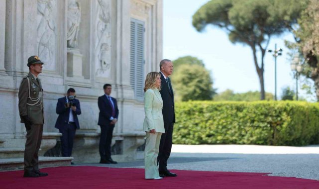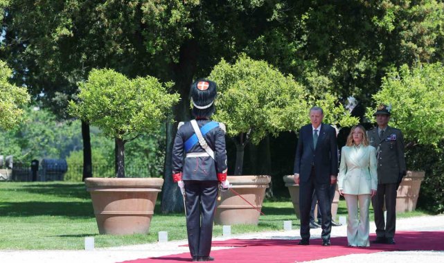 Cumhurbaşkanı Recep Tayyip Erdoğan, İtalya Başbakanı Giorgia Meloni davetine icabetle başkent Roma'ya geldi. Cumhurbaşkanı Erdoğan ve beraberindeki heyet, Roma Fiumicino Leonardo da Vinci Uluslararası Havalimanı'nda İtalya Protokol Müdürü Bruno Pasquino ile Türkiye'nin Roma Büyükelçisi Elif Çomoğlu Ülgen ve eşi Sinan Ülgen, Milano Başkonsolosu Mehmet Özöktem, Vatikan Büyükelçiliği Geçici Maslahatgüzarı Neslihan Altay ve Roma Büyükelçiliği personeli tarafından karşıladı. Cumhurbaşkanı Erdoğan havalimanının ardından Meloni'nin resmi görüşmelerini gerçekleştirdiği Villa Doria Pamphili'ya geçti. Cumhurbaşkanı Erdoğan, Villa Doria Pamphili'da İtalya Başbakanı Giorgia Meloni tarafından resmi törenle karşılandı. Cumhurbaşkanı Erdoğan, resmi karşılama töreninde karşılama kıtasını karşıladı.