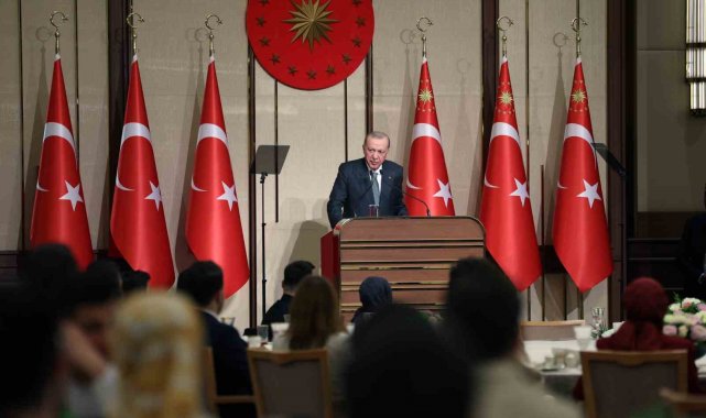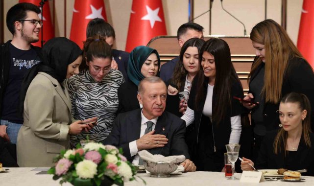 Cumhurbaşkanı Recep Tayyip Erdoğan, Cumhurbaşkanlığı Külliyesi'nde Üniversiteli Gençler ile İftar Programı'nda bir araya geldi. Milletin evinde gençleri misafir etmekten büyük bir memnuniyet duyduğunu belirten Erdoğan, "Soframızı bizimle paylaşan, coşkusuyla, enerjisiyle, ümidiyle bize güç ve ilham veren siz kıymetli öğrencilerimize yürekten teşekkür ediyorum. Başı rahmet, ortası mağfiret, sonu cehennem azabından kurtuluş olan Ramazan-ı Şerif'inizi canı gönülden tekrar tebrik ediyorum. Rabbim bu mukaddes ayda tuttuğumuz oruçları, kıldığımız namazları, ettiğimiz duaları katında inşallah kabul buyursun diyorum. Kitabullah'ta bin aydan daha hayırlı olduğu müjdelenen Kadir Gecenizi ve Pazar günü müşerref olacağımız Ramazan Bayramınızı şimdiden tebrik ediyorum. Sizlerin şahsında istiklal ve istikbalimizin teminatı, yarınlarımızın mimarı tüm gençlerimize bütün evlatlarımıza selamlarımı, sevgilerimi, en derin muhabbetlerimi gönderiyorum. Kalbi bu ülke için atan, ümidini bu millete bağlayan, tarihine, kimliğine, kültürüne, inanç ve değerlerine sıkı sıkıya sahip çıkan her bir evladımızın gözlerinden öpüyorum. Rabbim böylesi gençlerin yokluğunu bu millete hiçbir zaman yaşatmasın" dedi.