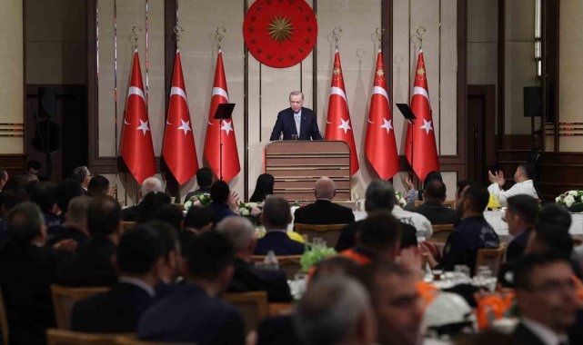 Cumhurbaşkanı Recep Tayyip Erdoğan, Cumhurbaşkanlığı Külliyesi'nde emekçilerle iftar programında konuştu. Cumhurbaşkanı Erdoğan, davete icabet eden katılımcılara teşekkür ederek, "Davetimize icabet edip, iftar soframızı onurlandıran her bir kardeşime şükranlarımı sunuyor, Ramazan-ı Şerifinizi ayrı ayrı tebrik ediyorum. Bizleri bu güzel iftar sofrasında bir araya getiren Çalışma Bakanlığımıza, Sayın Bakan ve ekibine de ayrıca teşekkür ediyorum. Cumhurbaşkanlığı Külliyemize, milletin evine, bu gazi mekana hepiniz hoş geldiniz. Bugün aynı zamanda bin aydan daha hayırlı olduğu bildirilen, Leyletü'l-Kadri yani Kadir Gecesi'ni de idrak ve ihya ediyoruz. Semadan rahmet ve bereketin yağdığı bu mübarek gecenin sizlerle birlikte milletimiz için, İslam alemi ve tüm dünya için hayırlara vesile olmasını diliyorum. Aynı şekilde önümüzdeki pazar günü müşerref olacağımız Ramazan Bayramınız şimdiden mübarek olsun" dedi.
