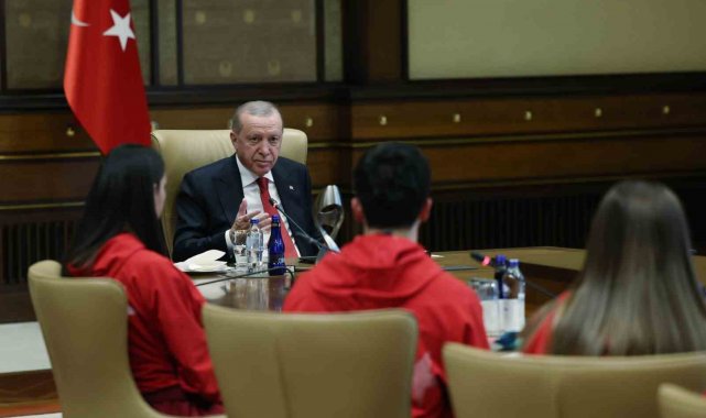 Cumhurbaşkanı Recep Tayyip Erdoğan, çeşitli branşlardan başarılı sporcuları Cumhurbaşkanlığı Külliyesi'nde kabul etti. Cumhurbaşkanı Erdoğan, kabul ettiği başarılı sporculara hitap etti. Konuşmasına, "Değerli temsilcilerim, sevgili misafirler, hepinize en kalbi duygularımla, muhabbetle selamlıyorum. Sizleri burada misafir etmekten büyük bir memnuniyet duyuyorum. Cumhurbaşkanlığı külliyemize, milletin evine hepiniz hoş geldiniz" sözleriyle başlayan Erdoğan, spor yapan, spora gönül veren tüm vatandaşlara selamlarını iletti.