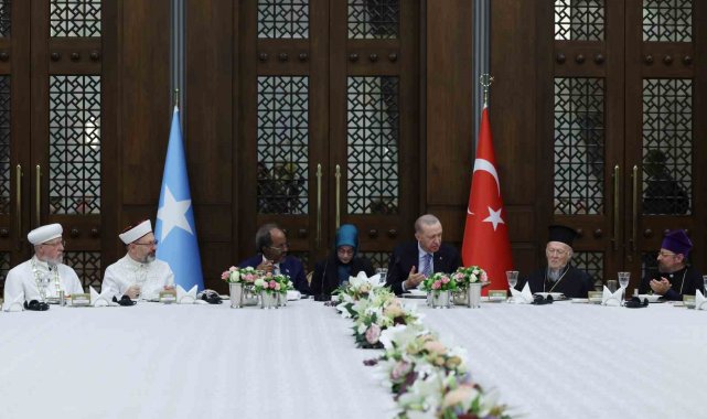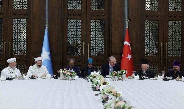 Cumhurbaşkanı Recep Tayyip Erdoğan, Cumhurbaşkanlığı Külliyesinde düzenlenen iftarda, dini azınlık temsilcileri ile bir araya geldi. İftara, Türkiye'ye ziyarette bulunan Somali Cumhurbaşkanı Hasan Şeyh Mahmud da katıldı. Somali Cumhurbaşkanı Mahmud'u Türkiye'de misafir etmenin bahtiyarlığını yaşadığını belirten Cumhurbaşkanı Erdoğan, "Aynı şekilde böyle mübarek bir günde iftar soframızı ülkemizdeki cemaat vakıflarının temsilcileriyle paylaşmaktan büyük bir memnuniyet duyuyorum. Davetimize icabet ederek iftar soframızı şereflendirdiğiniz için her birinize ayrı ayrı teşekkür ediyorum. Sizlerin vasıtasıyla temsil ettiğiniz cemaatlerin bütün mensuplarına selam ve sevgilerimi gönderiyorum" dedi.