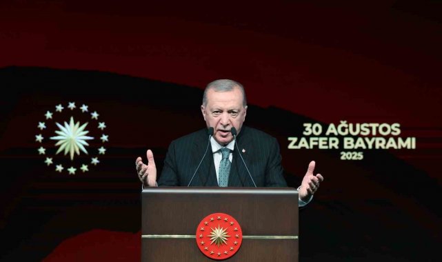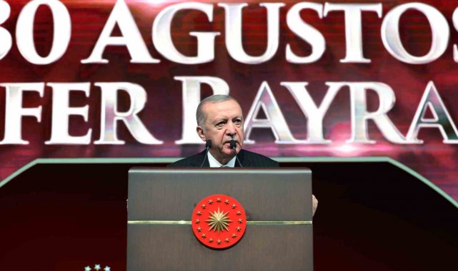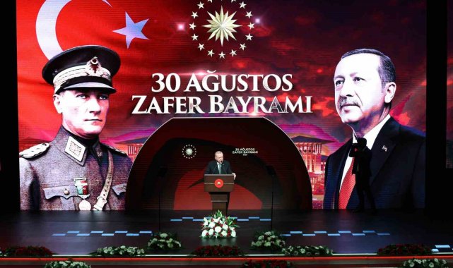İşgal ordularının bozguna uğratılarak emperyalist emellerin boşa çıkarıldığı 30 Ağustos zaferinin bağımsızlık iradesiyle birlikte bu topraklardaki ebedi varlığın da tescili, teyidi, ebedi bir mührü olduğunu ifade eden Erdoğan, "1071'de Malazgirt'te başlayan, 1922'de Dumlupınar'da güçlenen zafer yürüyüşümüz bin yıldır kesintisiz bir şekilde devam etmektedir, inşallah ebediyen de devam edecektir. İçinde bulunduğumuz asrı Türkiye Yüzyılı yapana kadar durmadan, dinlenmeden, zorluklara ve engellere aldırmadan çalışacağız. Rabbim yolumuzu, bahtımızı açık etsin diyorum. Biraz önce bizleri gönül coğrafyamızın farklı yerlerinden selamlayan kahraman askerlerimize muhabbetlerimi iletiyorum. Başta Gazi Mustafa Kemal Atatürk olmak üzere büyük zaferin ve İstiklal Harbimizin tüm kahramanlarını şükranla, minnetle ve rahmetle anıyorum. Kurtuluş Savaşımızı sevk ve idare eden Büyük Millet Meclisimizin tüm mensuplarına Cenab-ı Allah'tan rahmet niyaz ediyorum. Malazgirt'teki ilk akınlardan bugüne istiklal ve istikbalimiz için cansiperane bir ruhla mücadele eden tüm şehit ve gazilerimizi kemali edeple yad ediyorum" dedi.