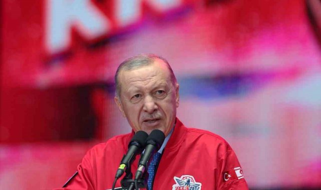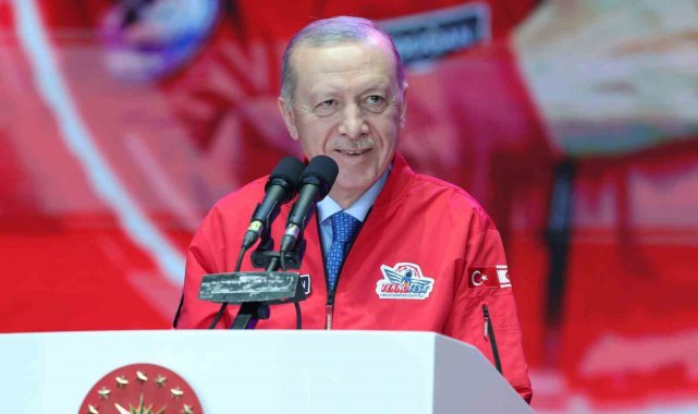 "Bu yola revan olduğumuzda bize 'boşuna heveslenmeyin, yapamazsınız, başaramazsınız' diyenlere bugün en güzel cevabı sizlerle veriyoruz" ifadesini kullanan Cumhurbaşkanı Erdoğan, milli muharip uçak KAAN, insansız savaş uçağı Bayraktar Kızılelma, muharip insansız uçak ANKA-3, jet motorlu eğitim ve taarruz uçağı Hürjet, yeni nesil temel eğitim uçağı Hürkuş, ağır sınıf taarruz helikopteri ATAK-2 ve daha nicelerinin Gök Vatan'da, çok maksatlı amfibi gemisi TCG Anadolu'nun ise Mavi Vatan'da bayrağı gururla dalgalandırdığını söyledi.