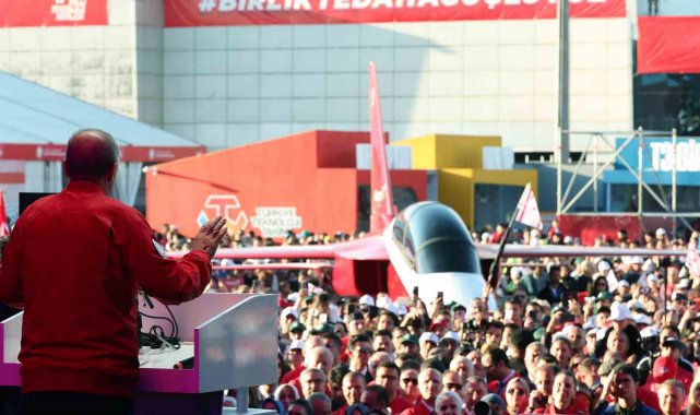 Sendikacılık yapmaya kimsenin mani olamayacağına dile getiren Cumhurbaşkanı Erdoğan, "Yap sendikacılığını. Biz bu işlere alışmışız. Türkiye'de sendikacılığın mazisi çok eskidir. Ama STK'ler, STK'lik nasıl yapılır bunu bilmesi lazım. Burada kalkıp da eğer sen Kuzey Kıbrıs'ta kızlarımızın başörtüsüyle uğraşmaya kalkarsan kusura bakma karşında bizi bulursun. Çünkü biz bunun mücadelesini çok verdik. Bu mücadeleyi vere vere bir yere geldik. Nasıl birilerinin gözleri kamaşacak diye güneş doğmaktan vazgeçmezse 3-5 marjinal rahatsız olacak diye biz de TEKNOFEST ruhundan, buradaki şu muhteşem ve muazzam tablodan vazgeçmeyiz" dedi.