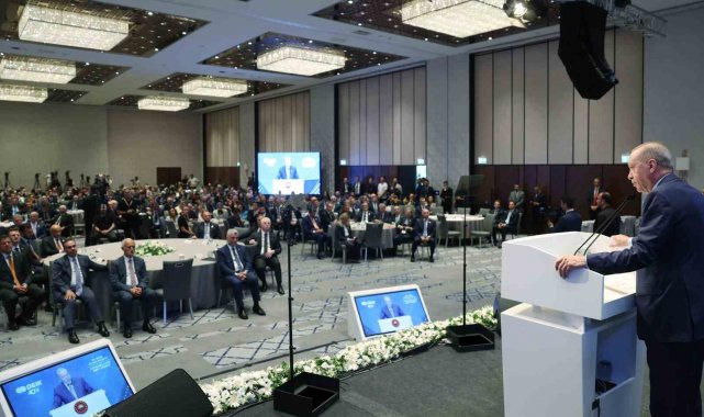 Bölgedeki çatışmaların ve küresel ekonomideki belirsizliklerin, yerli ekonomiye verdiği tedirginliklerin farkında olduklarını vurgulayan Cumhurbaşkanı Erdoğan, "Gazze'deki soykırımla başlayan, ardından İsrail'in Lübnan'a, Yemen'e, İran ve Suriye'ye saldırmasıyla artan jeopolitik riskleri de çok net okuyoruz. İş dünyamızın fırtınalı bir denizde yol almaya çalıştığı aşikardır. Türk iş dünyası, yeni durumlara adaptasyon kabiliyeti en yüksek kesimler arasında ilk sıradadır. İhracatçılarımız başta olmak üzere şirketlerimizin yeni pazarlar bularak, yeni ortaklıklar kurarak bu sancılı dönemi başarıyla yönettiğini görüyoruz. Biz de bütün bu gelişmeleri yakından takip ediyor, doğuracağı risklerle beraber potansiyel fırsatları da dikkate alarak yeniden şekillenen küresel sistemde ülkemizi en iyi şekilde konumlandırmaya çalışıyoruz" şeklinde konuştu.