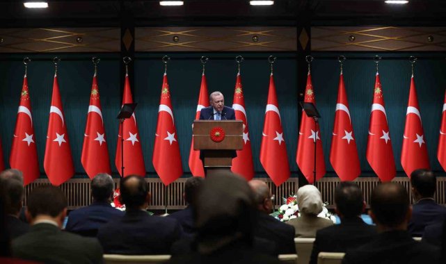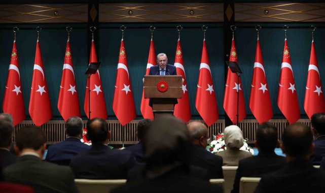 Cumhurbaşkanı Recep Tayyip Erdoğan, Cumhurbaşkanlığı Külliyesi'nde düzenlenen Kabine Toplantısı'nın ardından "Millete Sesleniş" konuşmasını gerçekleştirdi. Erdoğan, toplantıda dış politikadan sanayiye, ekonomiden güvenliğe birçok konuyu mütalaa ettiklerini belirterek, kabinede alınan kararların ülke, millet ve tüm insanlık için hayırlara vesile olması temennisinde bulundu. Cumhurbaşkanı Erdoğan, "Buradan hangi siyasi görüşten, hangi etnik kökenden olursa olsun Türkiye için çalışan, Türkiye için dertlenen, kalbi Türkiye için atan herkese, tüm vatandaşlarıma içtenlikle teşekkür ediyorum. Toplantımızın detaylarına geçmeden evvel bir hususun altını çizmek istiyorum: Küresel sistemdeki çatırdamaların olumsuz etkilerini en fazla hissettiğimiz kırılgan bir dönemden geçiyoruz. Yakın çevremize baktığımızda savaşların, çatışmaların, gerilimlerin, siyasi ve ekonomik dalgalanmaların hiç eksik olmadığı görülüyor. Türkiye'nin içinde yer aldığı bölge, şairin 'akrebin kıskacında yoğrulmuş' ifadesinde anlamını bulan sürecin tam ortasındadır" dedi.