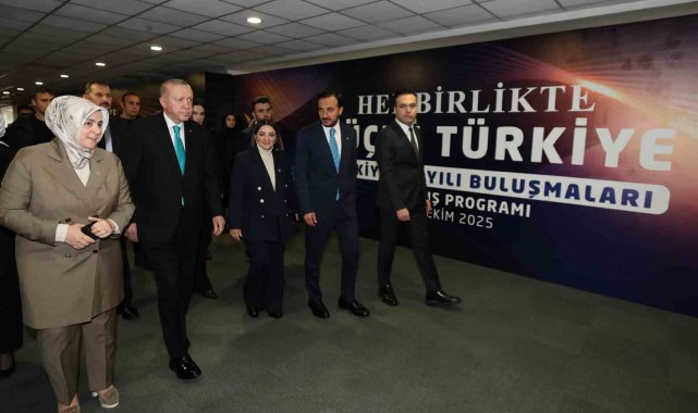 AK Parti kadroları olarak Türkiye'de yüzbinlerce vatandaşımızla bir araya geldiklerini kaydeden Cumhurbaşkanı Erdoğan, "Ana muhalefet partisi, ülkemizi yabancılara şikayet turları düzenlerken biz 81 ilimizde, 973 ilçemizde gerçekleştirdiğimiz buluşmalarda milletimizle kucaklaştık. AK Parti kadroları olarak Türkiye'nin dört bir ucunda esnafından çiftçisine, iş insanından akademisyenine, işçisinden emeklisine son 2 ayda yüzbinlerce vatandaşımızla bir araya geldik. Mensubu olmakla iftihar ettiğimiz milletimiz için yaptığımız çalışmaları ve ortak gelecek vizyonumuzu Türkiye Yüzyılı Buluşmalarında çok net bir şekilde ortaya koyduk. İstikametini milletin çizdiği eser ve hizmet notunu daima milletin verdiği bir hareket olarak toplumun tüm kesimlerinin nabzını tuttuk. İstişare mekanizmasını efradını camii ağyarını mani olacak şekilde tam teşekküllü işlettik. Tabii CHP'li belediyelerde işimiz bir daha zor. Şikayet listemiz biraz daha uzundu. CHP'li belediyelerin adeta alameti farikası olan yolda kalan otobüslerden akmayan musluklara, toplanmayan çöplerden en tepeden en uca uzanan yolsuzluk iddialarına kadar birçok sorun bize iletildi. Son 2 seçimde el değiştiren yerel yönetimlerdeki dertlerin kabarıklığı doğrusunu söylemek gerekirse bizim açımızdan da ibretliktir. Şimdi bu toplantılardan aldığımız geri dönüşler ve sizlerden gelen verilerle önümüzdeki döneme ilişkin yol haritamıza inşallah son şeklini veriyoruz. Şunu burada özellikle belirtmek istiyorum; AK Parti yolunu da yönünü de güzergahını da milletin belirlediği partidir. AK Parti'ye cesaret veren milletimizin çelikten iradesidir, duasıdır, desteğidir, refikliğidir. Elde ettiğimiz her başarı da gözü yaşlı anaların duası vardır. Yerim ve öksüzlerin payı vardır. Allah için koşturan kardeşlerimizin fedakarlığı vardır. Yüreği bu ülke için çarpan milyonlarca kardeşimizin alın teri vardır. Bu hareket, erdemliler hareketidir. Bu ocak, basiret, feraset ve merhamet ocağıdır. Rahve ovasındaki o akıncı ruh, kutlu fethi gerçekleştiren iman ve inanç işte buradadır" ifadelerini kullandı.