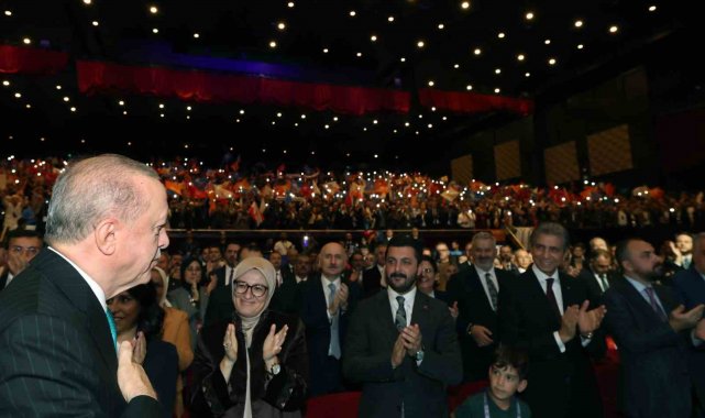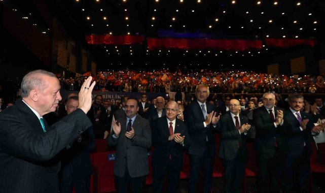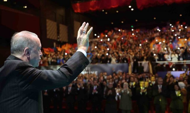 Barış, huzur ve istikrar denince akla ilk Türkiye geldiğini kaydeden Cumhurbaşkanı Erdoğan, "Türkiye dış politikası ile demokrasisi ile savunma sanayi ile ekonomisi ile içeride ve dışarıda attığı kararlı adımlarla artık küresel bir güce dönüşüyor. Bugün barış, huzur denince, istikrar denice akla ilk Türkiye geliyor. Şefkat ve merhamet denince, adalet denince zihinlerde ilk bu aziz millet canlanıyor. Sahada ve masada güçlü Türkiye gerçeğini dost düşman fark etmeksizin bugün herkes kabul ediyor. Bunu açıkça dillendirmek zorunda kalıyorlar. Suriye'den Gazze'ye, Körfez'den Rusya - Ukrayna arasındaki çatışmalara kadar hiçbir yerde Türkiye'siz bir denklem kurulamıyor. Artık hem bölgesinde hem dünyada sözüne itibar edilen çevresine huzur ve istikrar ihraç eden bir Türkiye var. Barışın, kardeşliğin, kalkınmanın ve adaletin egemen olduğu Türkiye Yüzyılı vizyonumuzu kuvveden fiile çıkarma yolunda tarihi bir eşikteyiz. AK Parti ve Cumhur ittifakı olarak bütün enerjimizi, bütün dikkatimizi bu vizyona yoğunlaştırmış durumdayız. Karşılaştığımız direnç en fazla süreyi biraz uzatır. Ama bu vizyonun tüm unsurları ile hayata geçmesini engelleyemez. Türkiye Yüzyılı'na giden yolda dönülmesi gereken kavşakların en başında yarım asırlık terör musibetinden ülkemizi kurtarmak yer alıyor. Terör musibetinden hamdolsun ülkemizi kurtardık mı? On binlerce vatan evladını şehit verdiğimiz ekonomimize 2 trilyon dolar maliyeti olan terör bataklığını inşallah 86 milyon el ele verip hep birlikte kurtarmaya devam edecek miyiz? Bu noktada samimiyiz, sabırlıyız. Soğukkanlı bir şekilde menzile yürüyoruz. Hedefe yaklaştıkça ülkemizin bu meseleyi çözmesini istemeyen odakların süreci rayından çıkarmaya yönelik operasyonlarını artıracağının elbette farkındayız. Bu tuzakların hiç birine düşmeyeceğiz. Her ne bahaneyle, her ne gerekçeyle olursa olsun aramıza nifak sokmak isteyenlere aldanmayacağız. Gayemiz, nesillerin heba olmadığı, annelerin ağlamadığı, barışın, kardeşliğin, güvenliğin, huzur ve refahın hüküm sürdüğü bir iklimin tüm bölgemizde hakim kılınmasıdır. Ortak bir iradeyle inşallah önce terörsüz Türkiye'yi, ardından da terörsüz bölgeyi en kalıcı eserimiz olarak bu ülkenin evlatlarına kazandıracağız" diye konuştu.