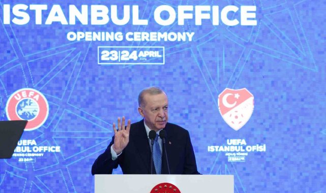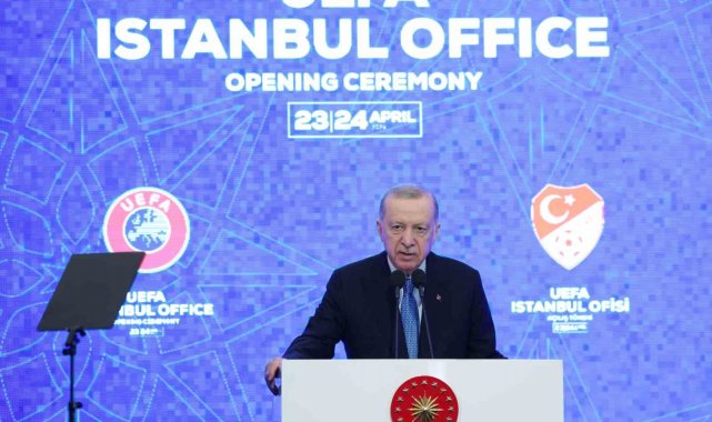 Cumhurbaşkanı Recep Tayyip Erdoğan, UEFA İstanbul Temsilciliğinin açılış programında konuştu. Türkiye Futbol Federasyonu'nun (TFF) UEFA'ya 1962 yılından beri tam üye olduğunu hatırlatan Erdoğan, "Tam 63 yıldır UEFA ile yakın koordinasyon içinde çalışıyoruz. Sadece son 20 senede 2005 ve 2023 yıllarında UEFA Şampiyonlar Ligi finallerine, 2009 UEFA Kupası finaline, 2013 yılında FİFA U20 Dünya Kupası'na, 2019 UEFA Süper Kupa finaline başarı ile ev sahipliği yaptık. Takımlarımız UEFA'nın organizasyonlarında her sene boy gösteriyor. A Milli Futbol Takımımız 2024 Avrupa Futbol Şampiyonası'nda çeyrek final oynarken, oynadığı futbolla futbolseverlerin gönüllerini fethetti. 2025 yılında A Milli Takımımız, uluslar liginde yer alma hakkını elde etti. 2026 UEFA Avrupa Ligi ve 2027 UEFA Konferans Ligi finallerine inşallah ev sahipliği yapacağız. 2032 Avrupa Futbol Şampiyonası'nı ise İtalya ile birlikte ülkemizde düzenleyeceğiz. Türkiye olarak olimpiyatlar dahil her türlü uluslararası spor etkinliğinin altından kalkacak kapasiteye ziyadesiyle sahibiz" ifadelerini kullandı.