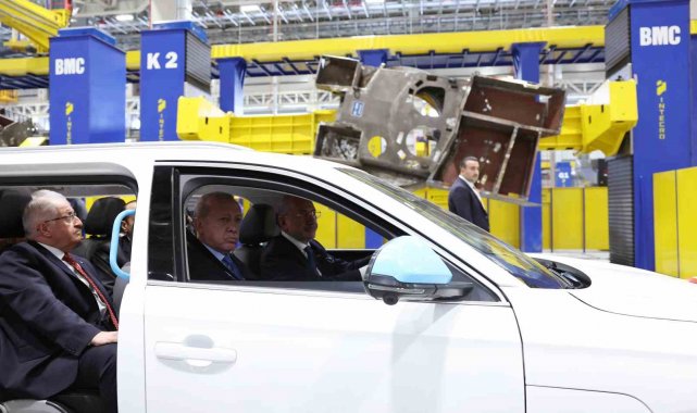 Cumhurbaşkanı Erdoğan, BMC'in Kahramankazan'daki üretim tesislerini üzerinde Cumhurbaşkanlığı forsu bulunan özel üretim TOGG'la gezdi. Cumhurbaşkanı Erdoğan'ı, TOGG'un direksiyonuna geçen BMC Yönetim Kurulu Başkanı Fuat Tosyalı gezdirdi. Dışişleri Bakanı Hakan Fidan, Milli Savunma Bakanı Yaşar Güler, Katar Başbakan Yardımcısı ve Savunma Bakanı Al Sani, Sanayi ve Teknoloji Bakanı Mehmet Fatih Kacır, Ulaştırma ve Altyapı Bakanı Abdülkadir Uraloğlu, SSB Başkanı Haluk Görgün ve İlim Yayma Vakfı Mütevelli Heyeti Başkanı, TÜGVA İstişare Kurulu Üyesi Bilal Erdoğan da Cumhurbaşkanı Erdoğan'a tesis ziyaretinde eşlik etti.