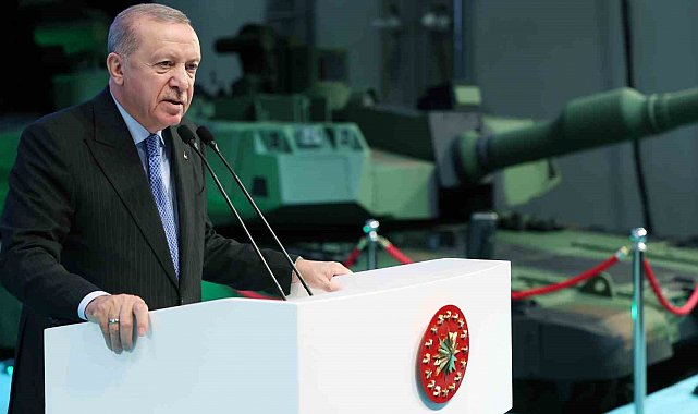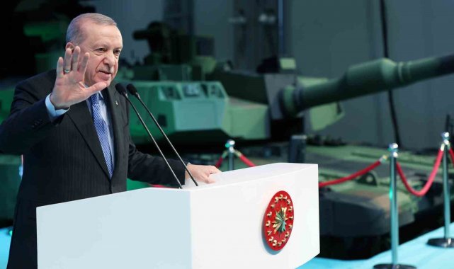 Savunma sanayinde devletin desteği, özel sektörün dinamizmiyle birleşince son yıllarda büyük bir ivme yakalandığına dikkat çeken Cumhurbaşkanı Erdoğan, "Şöyle sözleri bir 20 yıl, 25 yıl geriye götürmek istiyorum. Ülkemizde bir toplu iğne üretebiliyor muyduk? Toplu iğne, silahtan bahsetmiyorum, hayır. Ama şu anda hamdolsun silahlarını üreten bir Türkiye var. Savunma sanayinde yüzde 20'yi bile üretemiyorduk ama şimdi yüzde 80'i yakaladık. İnsansız hava araçları, nerede, böyle bir imkânımız var mıydı? Yok. Ama şimdi insansız hava araçlarını üreten, silahlı insansız hava araçlarını üreten, Akıncı'sını üreten bir Türkiye var. Son teknolojiye sahip hava, kara, deniz araçlarımızla destan yazmaya devam ediyoruz. Artık yalnızca takip eden değil, takip edilen bir devletiz. Modern silah sistemlerinden kompleks koruma paketlerine, sürüş destek modüllerinden elektronik harp altyapısına kadar her hamlesi, her ürünü merakla beklenen bir ülkeyiz" dedi.