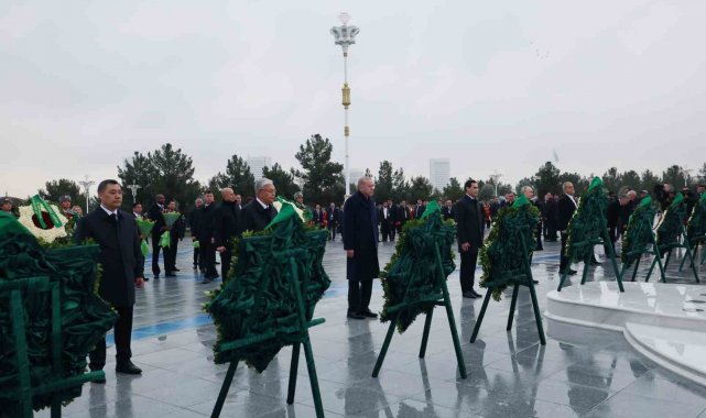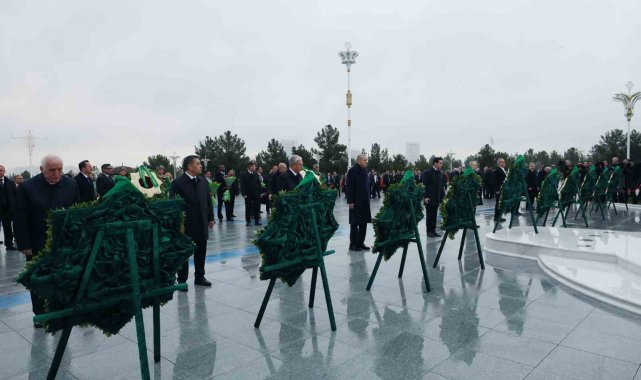Cumhurbaşkanı Recep Tayyip Erdoğan, Türkmenistan'ın başkenti Aşkabat'ta devlet ve hükümet başkanlarıyla birlikte Tarafsızlık Anıtı'na çelenk koyma törenine katıldı.