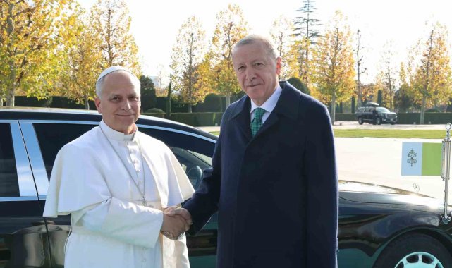 Baş başa görüşmeye geçen Erdoğan ve Papa 14. Leo, ikili ve heyetler arası gerçekleştirecekleri görüşmelerin ardından Cumhurbaşkanlığı Millet Kütüphanesi Cihannüma Salonu'nda davetlilere hitap edecek.