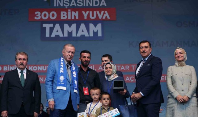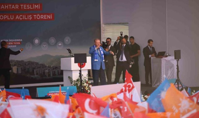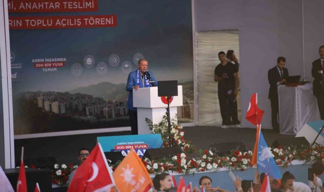 Cumhurbaşkanı Erdoğan, törende yaptığı konuşmada, "Malatya'mızın 13 ilçesinde 719 mahallesindeki her bir kardeşime selam ve sevgilerimi gönderiyorum. Deprem bölgesinde bugün 300 bininci konutumuzun dağıtımını yapıyoruz. Bugün yeni yatırımlarımızın resmi açılışını yapmanın gururunu yaşıyoruz. Hayırlı olmasını diliyorum. Bu konutlarda emeği geçen her bir kardeşime teşekkür ediyorum. Bugün Malatya'dayız. Malatya halkına ayrı ayrı teşekkür ediyorum. Malatya hem Türkiye'nin hem bölgesinin en gözde merkezlerinden biridir. Ülkemize önemli katkılar yapan bu şehirle gurur duyuyoruz. Malatya'yı asla ihmal etmedik. Malatya halkına aşkla hizmet ettik. Bundan sonrada aynı aşkla sizler için çalışmaya devam edeceğiz. 6 Şubat depremlerinden en çok etkilenen Malatya'ydı. 11 ilimizde 53 bin 737 canımızı kara toprağa verdik. Deprem şehitlerimize Allah'tan rahmet diliyorum. Bu meydana gelen kardeşimin sayısı 52 bindir. Depremden sonra geride kalan kardeşlerime sabır diliyorum. Allah bu acıyı bir kez daha yaşatmasın. 6 Şubat acısı bizim derdimiz oldu. Ama bu dert bize dayanışmayı bir ve beraberliği yeniden başlamayı öğretti. Biz de o gece hemen harekete geçtik. 7/24 çalıştık devletin tüm kurumlarıyla beraber. Kısa sürede enkazları kaldırdık, yaraları sardık. Yapılanı edileni sizler de görüyorsunuz. Ocak ayında 201 bin, Haziran'da 250 bininci konutumuzu depremzedelere teslim etmiştik. Deprem bölgemizdeki 5 ilimizde Diyarbakır, Gaziantep, Kilis Osmaniye ve Adana'da anahtarların çok önemli kısmı hak sahiplerine teslim edildi. Malatya, Kahramanmaraş, Hatay, Adıyaman, Şanlıurfa ve Elazığ'da çalışmalarımız son sürat devam ediyor. Bugün Malatya'da 300 bininci konutun anahtarını teslim ediyoruz. Hükümet bu enkazın altında acaba ne zaman kalacak umuduyla tam 2,5 yıldır bekleyen deprem turistlerini bir kez daha hüsrana uğratıyoruz. Şunu da büyük bir gururla ifade etmek isterim. Bugüne kadar Malatya'mızın merkez ve ilçelerinde 27 bin 540 bin konut kırsalında ise 6 bin 828 köy evi olmak üzere toplam 34 bin 369 haneyi depremzedelere teslim ettik. Bugünkü törenle il ve ilçe merkezlerinde 7 bin 23'ü konut 2 bin 16'sı köy evi olmak üzere toplam 9 bin 39 konutun kurasını çekiyoruz. Böylece Malatya genelinde tam 43 bin 408 hak sahibi kardeşimiz yeni yuvasının anahtarlarına kavuşuyor. Bu arada iş yerlerimizin de yapımı sürüyor. Bugün kuraları çekilecek 2 bin 8 iş yeri ile birlikte teslimatını yaptığımız toplam işyeri sayısı 3 bin 25'e çıkıyor. Sadece Malatya'da değil, diğer illerimizde de çalışmalar devam ediyor. Hatay'da 16 bin 993 konut ve köy eviyle bin 355 işyerini, Kahramanmaraş'mızda 5 bin 749 konut ve köy eviyle 662 iş yerini, Adıyaman'ımızda bin 430 konut ve köy eviyle 44 iş yerini, Diyarbakır'ımızda 5 bin 713 konut ve köy evini, Adana'mızda 4 bin 60 konut ve köy evini, Gaziantep'imizde 2 bin 449 konut ve köy evini, Şanlıurfa'mızda 2 bin 676 konut ve köy evini, Elazığ'mızda bin 709 konut ve köy evini Osmaniye'mizde 373 köy evini tek seferde teslim ediyoruz. Böylelikle 300 bin sınırını aşarak bugüne kadar 13 ilimizde 295 bin 929'u konut ve 8 bin 927'si iş yeri olmak üzere toplam 304 bin 836 bağımsız bölümü hak sahibi vatandaşlarımıza veriyoruz. İnşallah yılbaşına kadar deprem bölgemizde 453 bin bağımsız bölümü tamamlamak niyetindeyiz. Yeni evine kavuşmamış tek bir vatandaşımız kalmayana kadar çalışacağız" dedi.