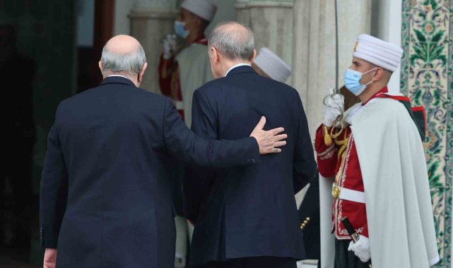 Daha sonra Cezayir Cumhurbaşkanlığı Sarayı'na geçen Erdoğan, mevkidaşı Abdülmecid Tebbun tarafından karşılandı