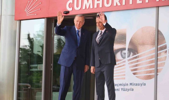 Cumhurbaşkanı Recep Tayyip Erdoğan, Cumhuriyet Halk Partisi (CHP) Genel Başkanı Özgür Özel'e CHP Genel Merkezinde iadeiziyarette bulunuyor