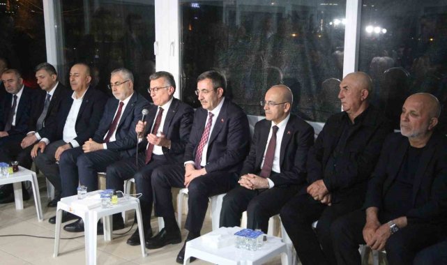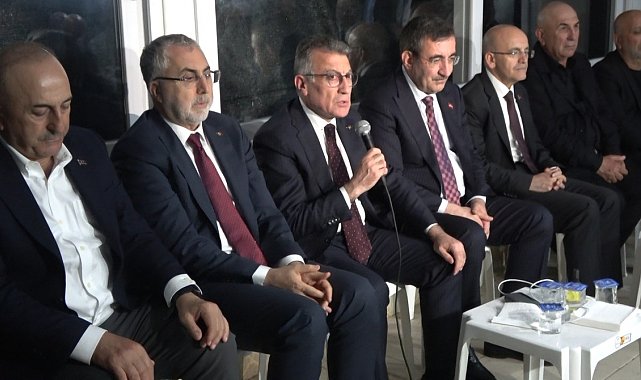 Cumhurbaşkanı Yardımcısı Yılmaz'a Çalışma ve Sosyal Güvenlik Bakanı Vedat Işıkhan, Hazine ve Maliye Bakanı Mehmet Şimşek, AK Parti Grup Başkanı Abdullah Güler eşlik etti.