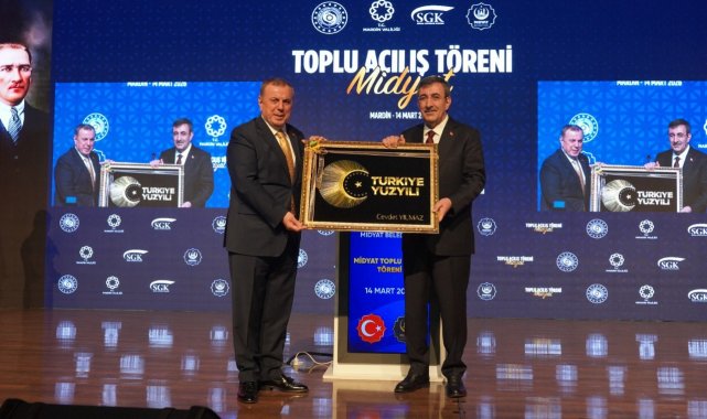 Midyat Kongre ve Kültür Merkezi'nde düzenlenen toplu açılış töreninde konuşan Cumhurbaşkanı Yardımcısı Cevdet Yılmaz, Midyat'ta hayata geçirilen projelerin kentin gelişimine katkı sağlayacağını söyledi. Tüm yatırımların ortak hedefinin Midyat'ı her alanda daha güçlü bir şehir haline getirmek olduğunu belirten Yılmaz, resmi açılışını gerçekleştirdikleri projelerin toplam yatırım büyüklüğü 2 milyar 660 milyon lirayı bulmakta olduğunu, bir ilçe belediyesinin bunu yaptığını görmek çok sevindirici, bazı belediyelere de örnek olur ifadelerini kullandı.