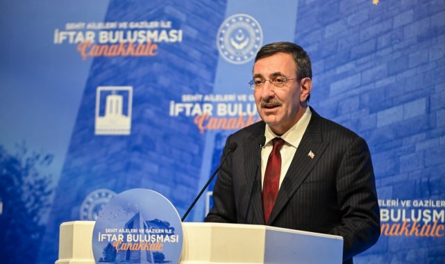 İftarda konuşan Cumhurbaşkanı Yardımcısı Cevdet Yılmaz, "Rahmet kapılarının ardına kadar açıldığı Ramazan-ı şerifinizi tebrik ediyor, bu mübarek aynın son iftarlarından birinde sizlerle aynı sofrayı paylaşmaktan büyük bir onur ve memnuniyet duyuyorum. 18 Mart Şehitleri Anma Günü vesilesiyle vatanımıza, bayrağımıza ve istikbalimize sahip çıkarken şehit düşen tüm kahramanlarımıza Allah'tan rahmet diliyorum. Şehit yakınlarımıza ve gazilerimize sıhhat ve afiyet temenni ediyorum. Şehitler diyarı Çanakkale'de, bu sabah icra edilen törende milletimizin istiklal uğruna ortaya koyduğu iradeyi bir kez daha hürmetle yâd ettik; vatan için toprağa düşen kahramanlarımızı rahmetle andık. Şimdi ise, bu vatanı bizlere emanet eden şehitlerimizin kıymetli aileleri ve gazilerimizle bir arada bulunmaktan onur duyuyorum. Çanakkale, bu milletin en zor şartlarda bile geri adım atmadığını, kaderini kendi iradesiyle şekillendirdiğini bütün açıklığıyla ortaya koyduğu bir dönüm noktasıdır. O gün cephede verilen mücadele, vatan söz konusu olduğunda nasıl bir birlik ve kararlılıkla hareket edildiğini gösteren güçlü bir hafızaya dönüşmüştür. Bugün şehitlerimizin hatırasında taşıdığımız emanet duygusu ve gazilerimizin onurlu duruşu, o gün ortaya konan iradenin hâlâ diri olduğunu göstermektedir. Ülkemizin güvenliği için görev yapan her bir evladımızın omuzlarında, Çanakkale'de ortaya konan o kararlılığın izleri vardır ve bu bağ, geçmiş ile bugün arasında kurduğumuz en sağlam sürekliliği ifade etmektedir. Böyle bir tarihî mirasın sorumluluğu ile içinde bulunduğumuz tabloya baktığımızda, dünya genelinde gerilimin arttığını ve bölgemizde daha kırılgan bir sürecin oluştuğunu görüyoruz" dedi.